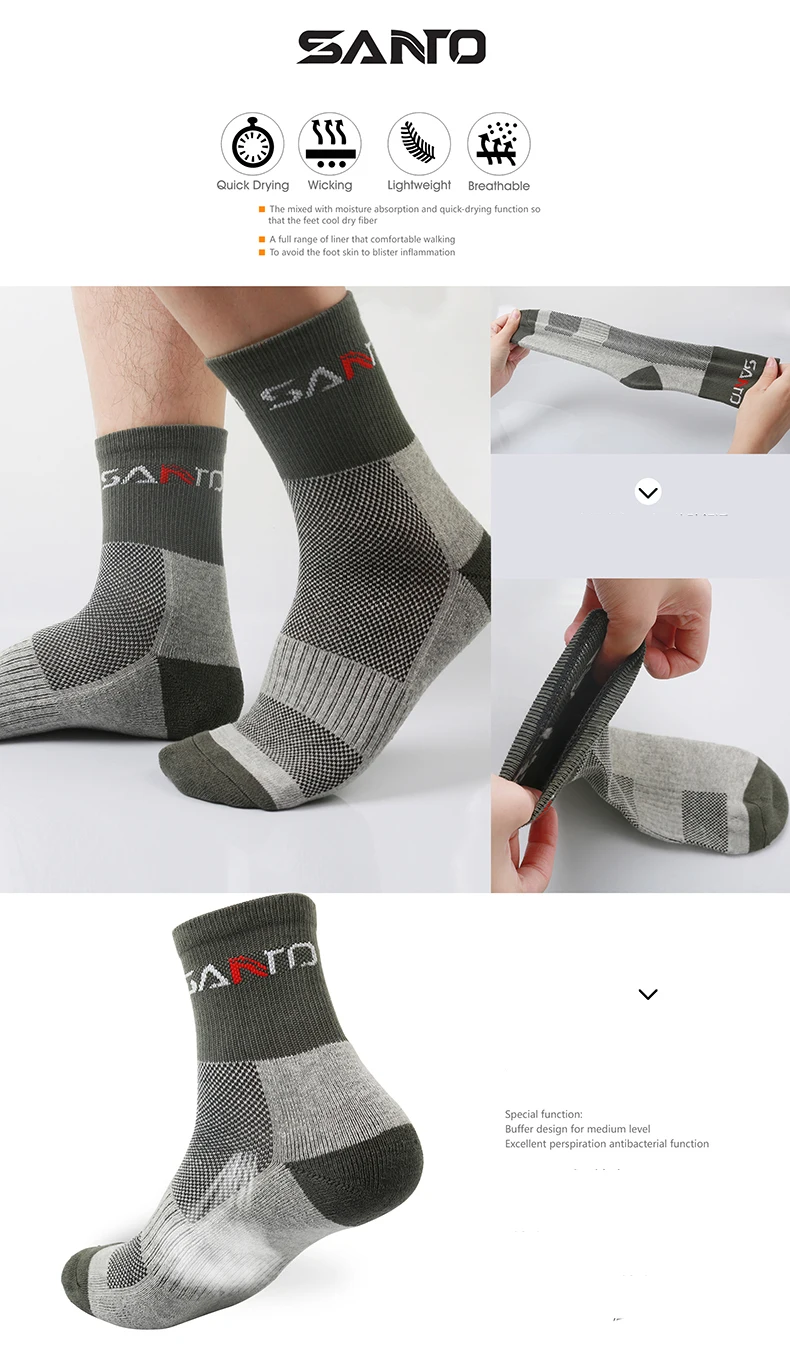 Санто быстросохнущие мужские носки для занятий спортом на открытом воздухе, походов, отдыха на велосипеде, полутолстые носки для бега