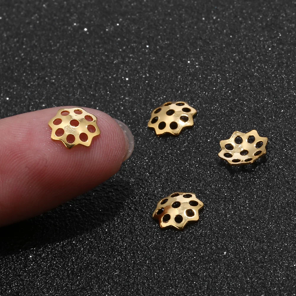 40 шт.лот 304 нержавеющая сталь Золотой филигранный цветок 6 мм 10 мм бусины для изготовления ювелирных изделий