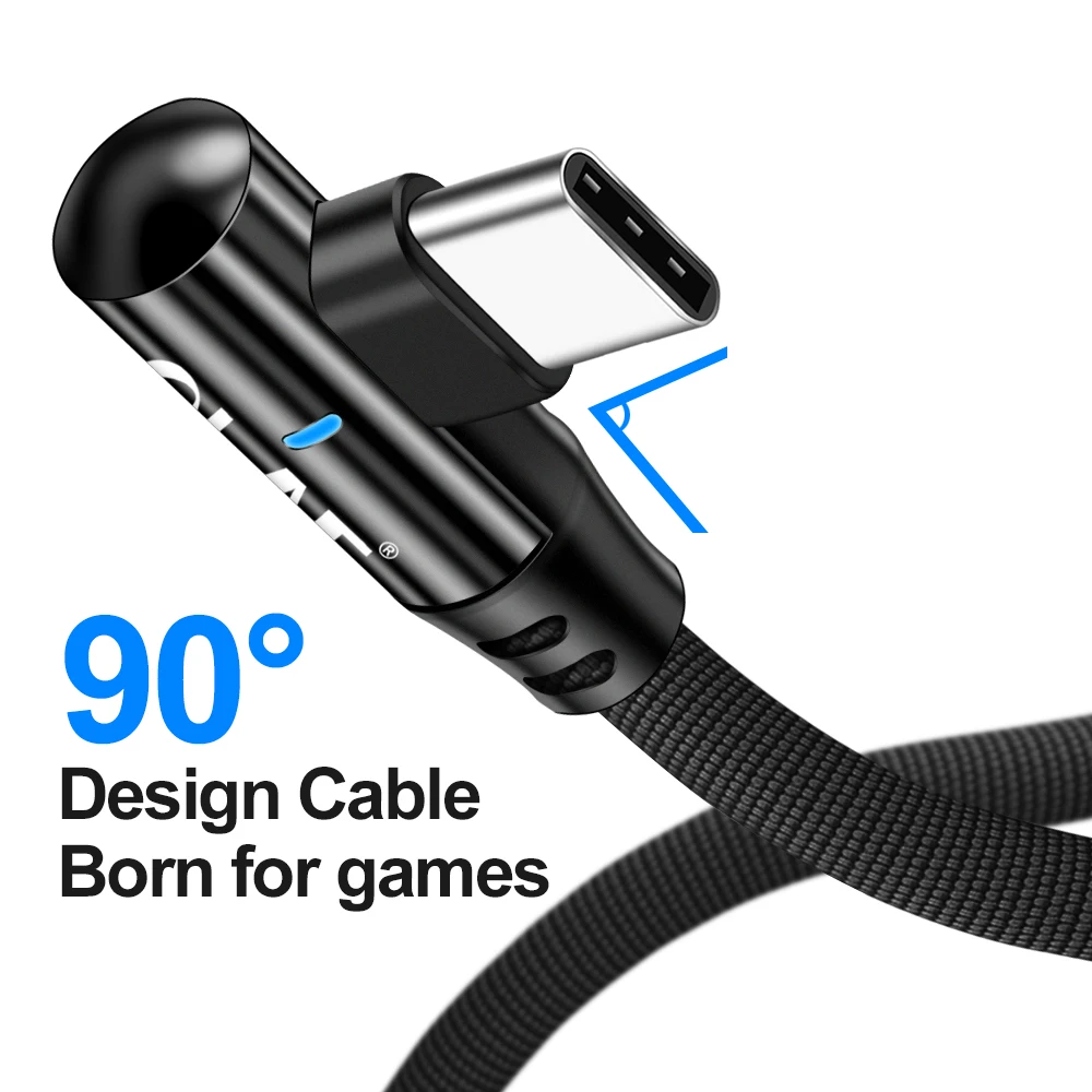Кабель USB Type-C, 90 градусов, 3 А, кабель для быстрой зарядки для...