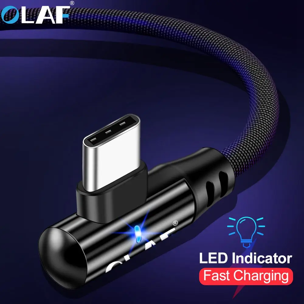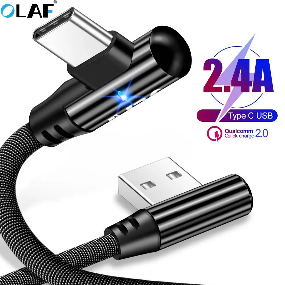 Кабель USB Type-C OLAF 90 градусов, кабель USB C 2,4 А для быстрой зарядки Samsung S9 S8 Xiaomi mi8 9 Huawei Oneplus 6t, кабель передачи данных Type-c
