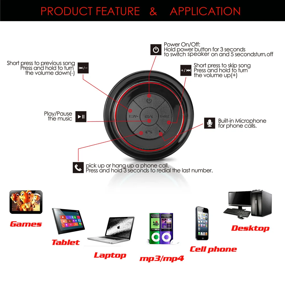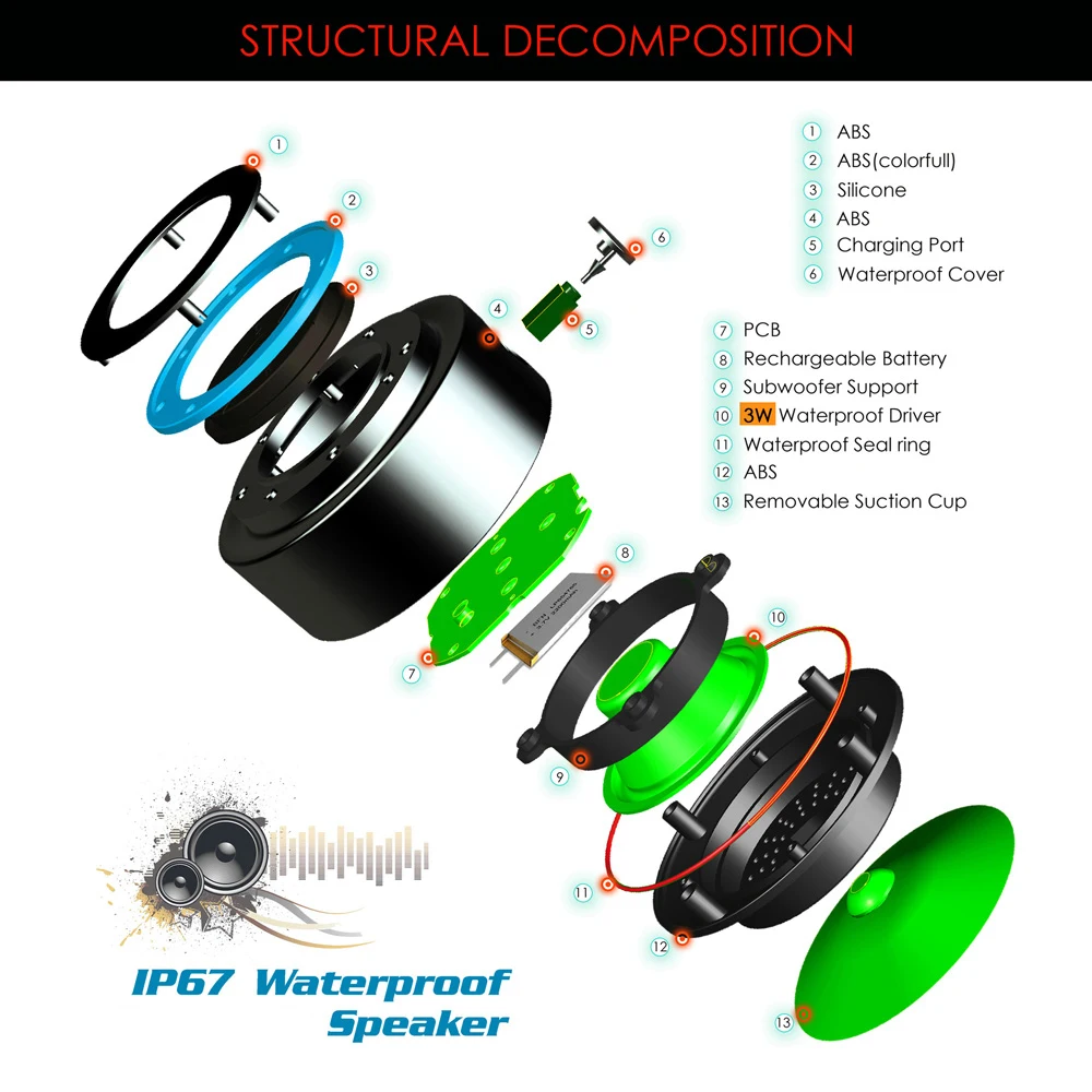 4.Уникальный водонепроницаемый функциональный дизайн, можно использовать в ванной, пляже, бассейне, наслаждаться расслабленной и красивой музыкой во время отдыха