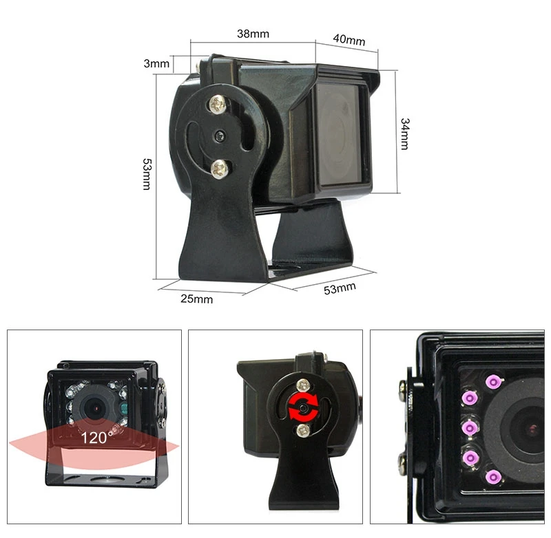Объектив с углом обзора 120 градусов, обеспечивает заднюю сторону автомобиля для эффективного управления задним ходом и парковкой.