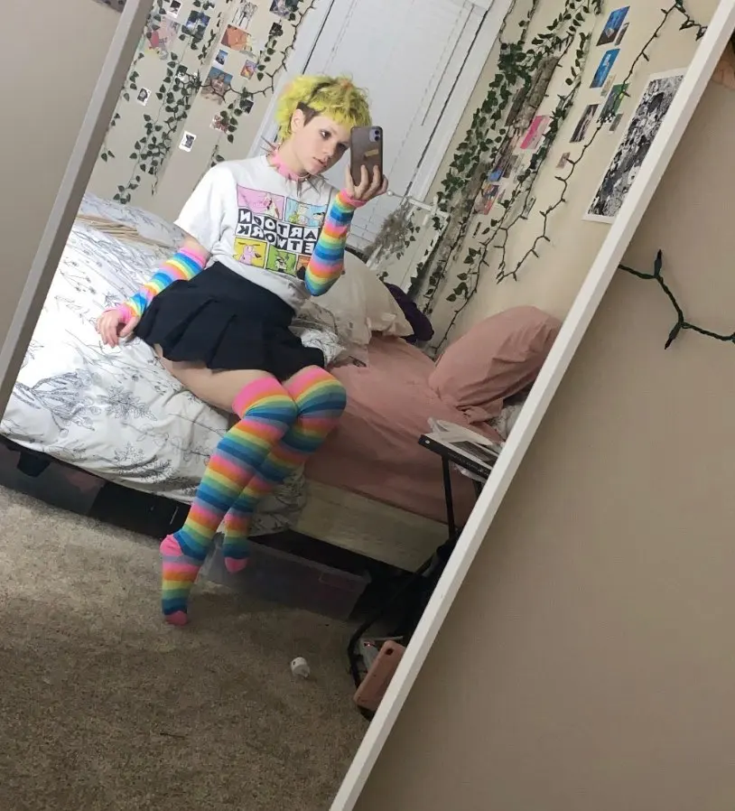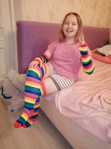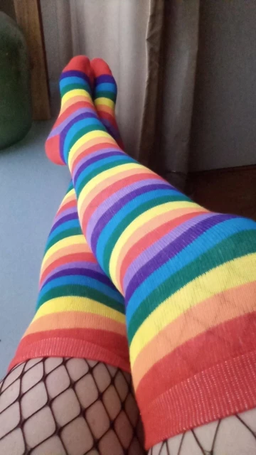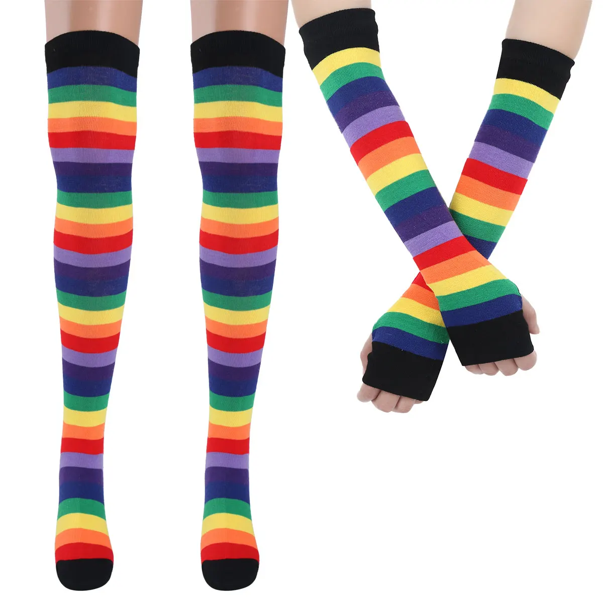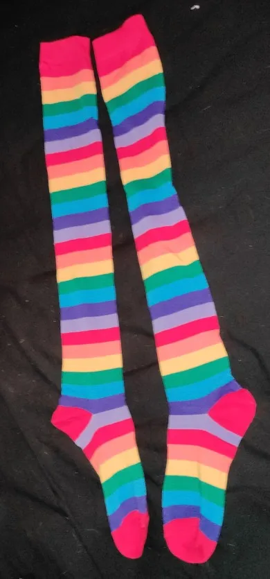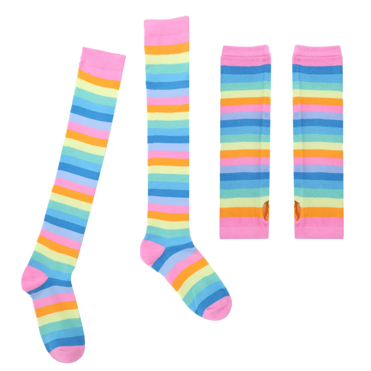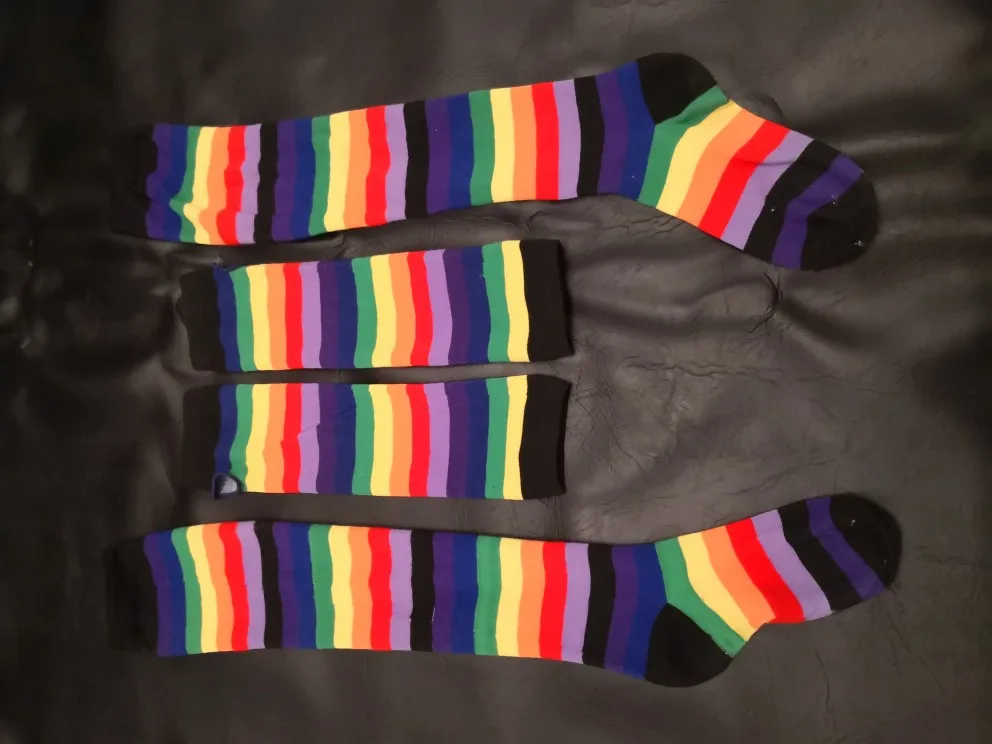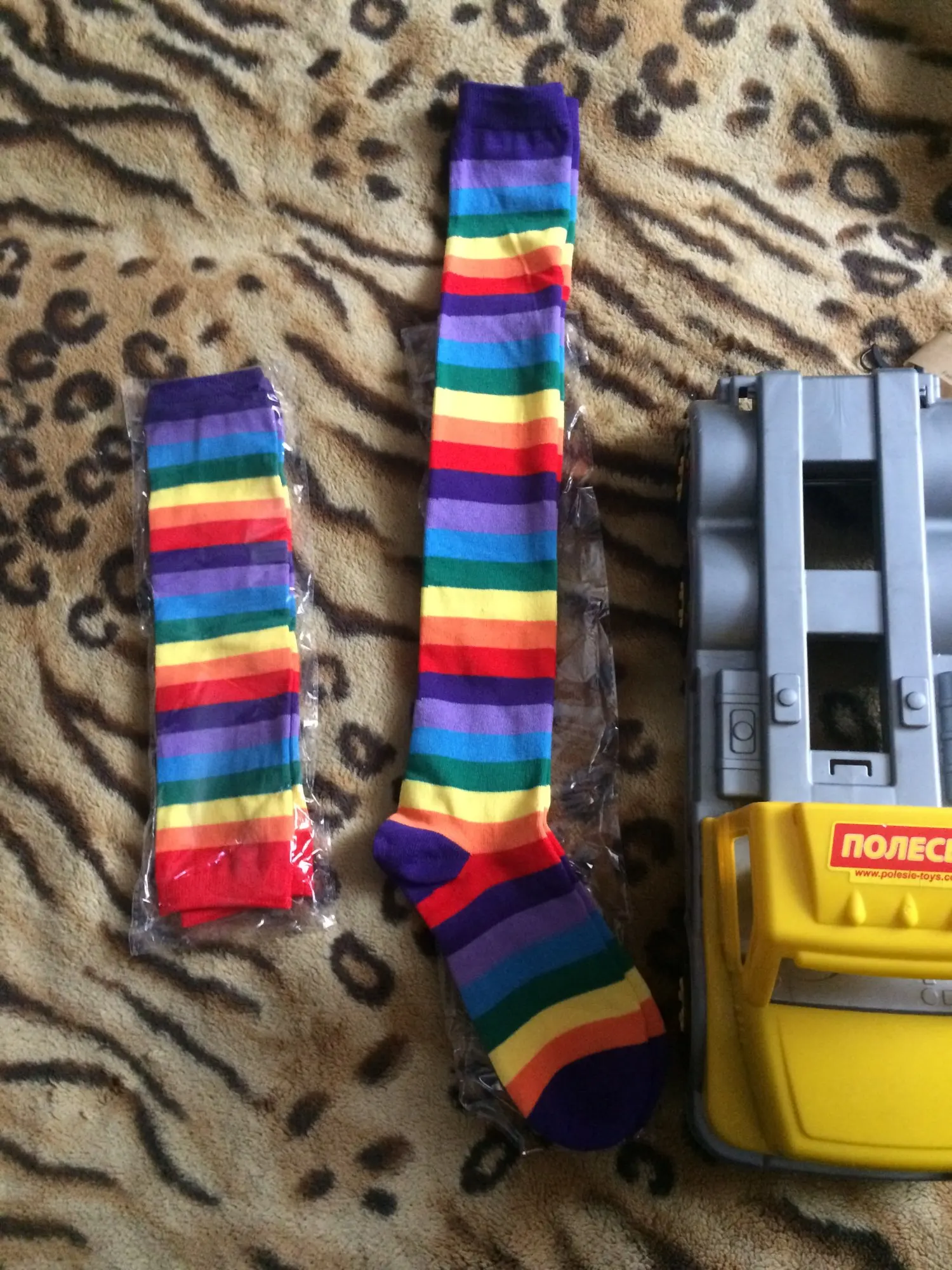 Чулки разноцветные, в полоску, с радужной расцветкой
