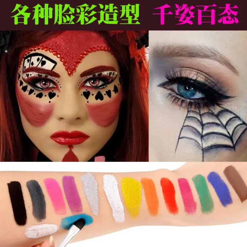 Краска для лица и тела, 15 цветов, Нетоксичная, на водной основе, с кисточкой, для рождества, Хэллоуина