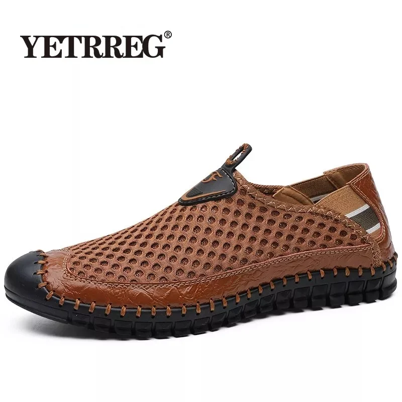 Мужские летние туфли из дышащего сетчатого материала, модные лоферы, мягкие удобные туфли на плоской подошве, размеры 38-48