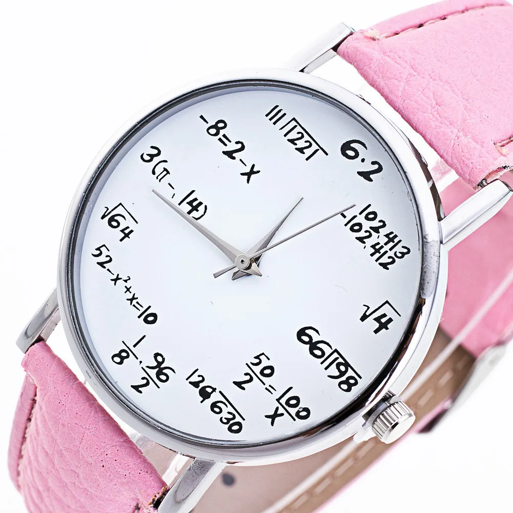 Женские кварцевые часы с кожаным ремешком, на математической формуле