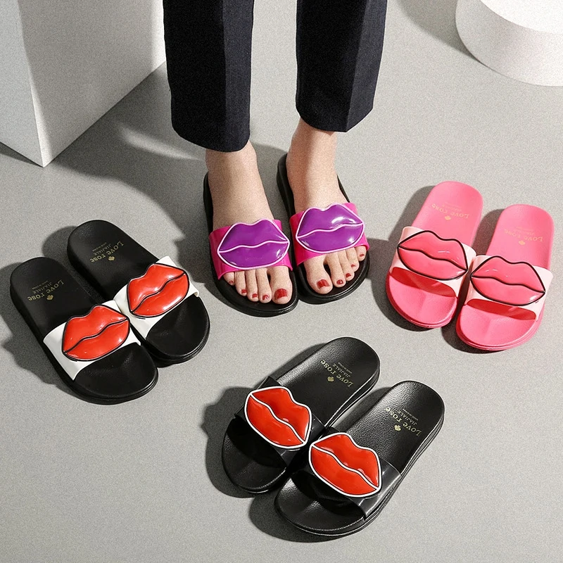 Женские летние шлепанцы с милыми губ, пляжные шлепанцы, шлепанцы, женская обувь, шлепанцы, Прямая поставка