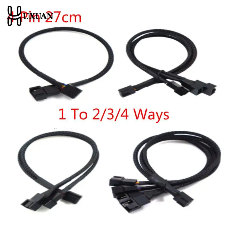 4-контактный кабель вентилятора Pwm 1 на 234 каналов разветвитель с черными рукавами 27 см Удлинительный кабель Разъем 4-контактный Удлинительный кабель PWM