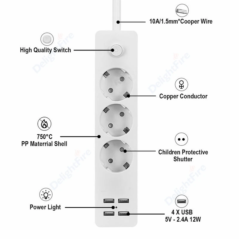 Выходной порт: 1 розетка/2 розетки + 4 порта USB
