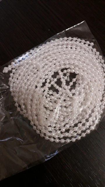 Сказать, что это бусы не решилась бы. У нас точно такой же - один в один - шнурок для жалюзи. ,, Бусины" тусклые, не те, что на фото продавца. Есть брак - проплешины. За подарок спасибо. Доставка около 3-х недель.