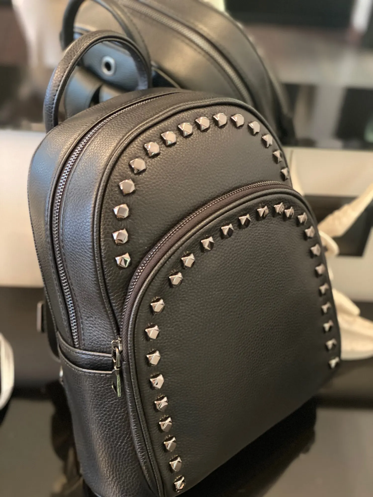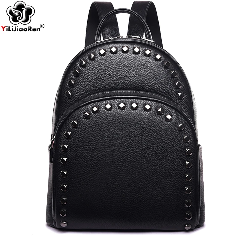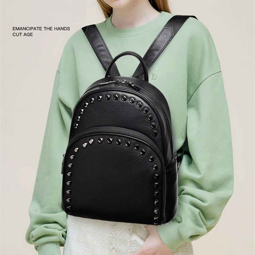 Рюкзак женский из натуральной коровьей кожи, с заклепками