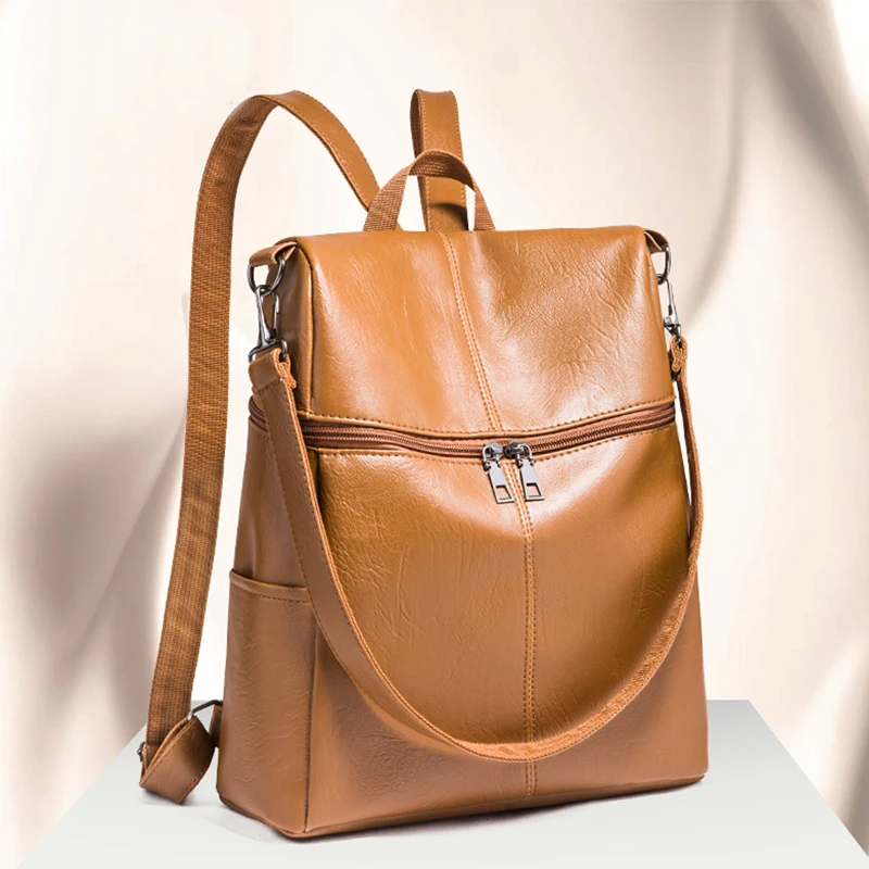 Модный женский рюкзак из ПУ кожи, однотонный водонепроницаемый рюкз...