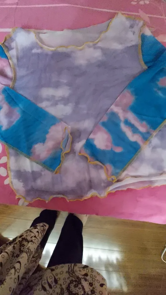 Футболка женская сетчатая с принтом голубого неба и облаков, кроп-топ, прозрачная Повседневная летняя футболка, пикантная рубашка в стиле пэчворк, 2020