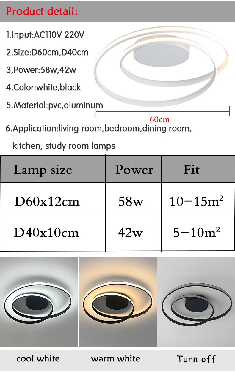Страна: CZ Body Color: white body Ships From: CHINA Emitting Color: Warm white No remote Wattage: D60cm 58W Доставка: Seller's Shipping Method 14.10.2020