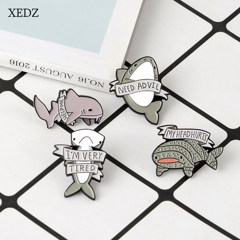 Брошь GDHY Shark с тигром HLEP ME NEED ADVIL, я очень устал, у меня...