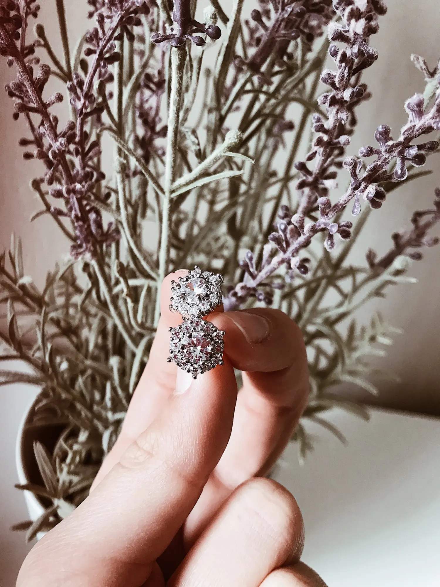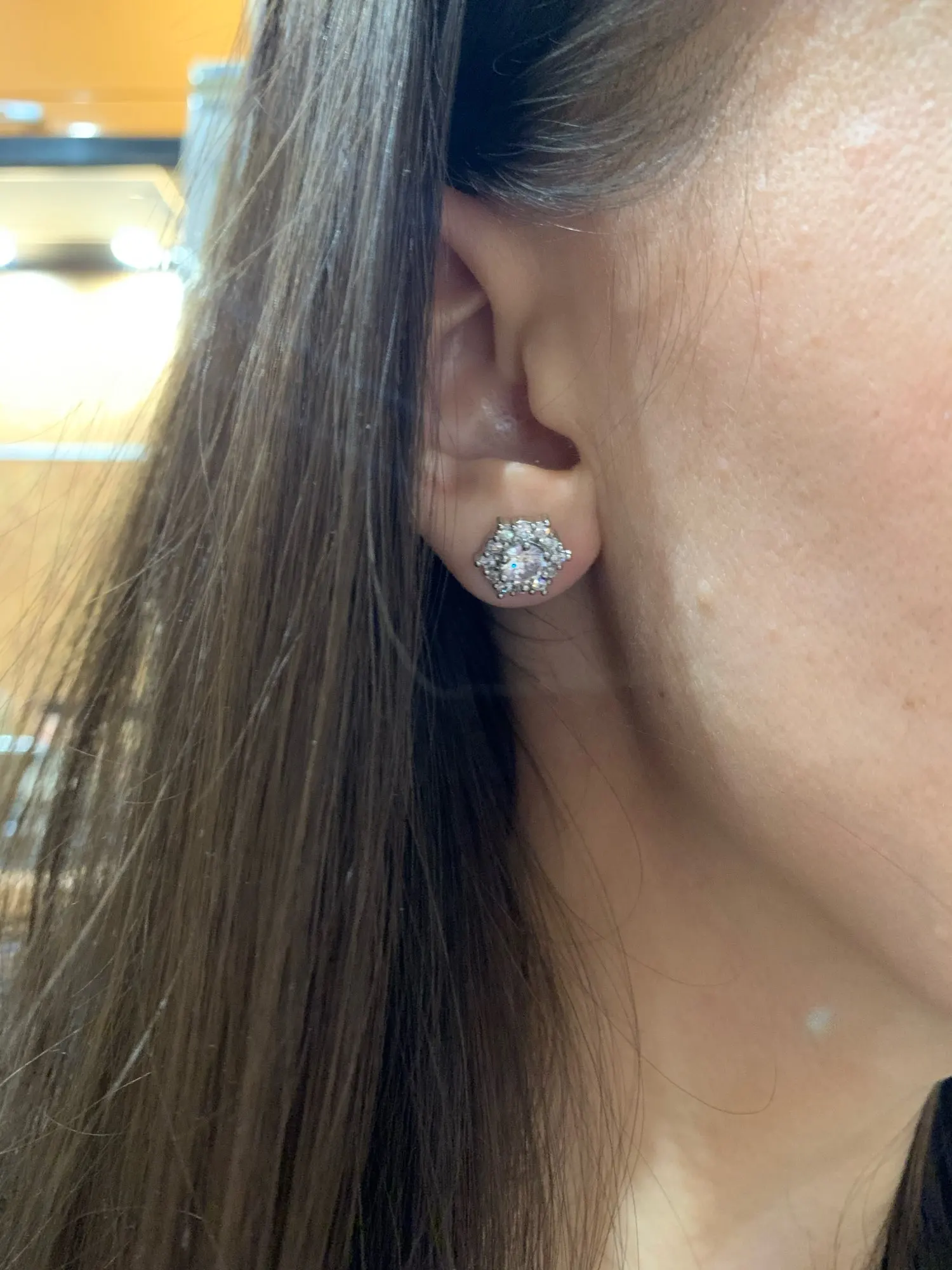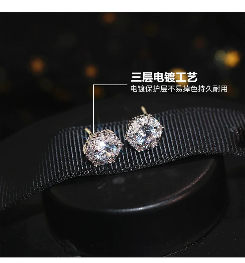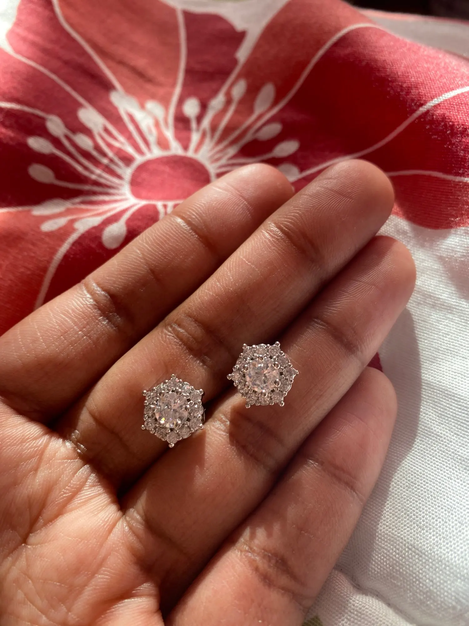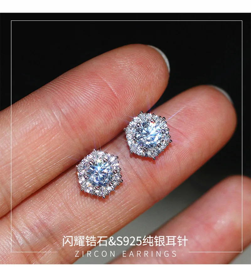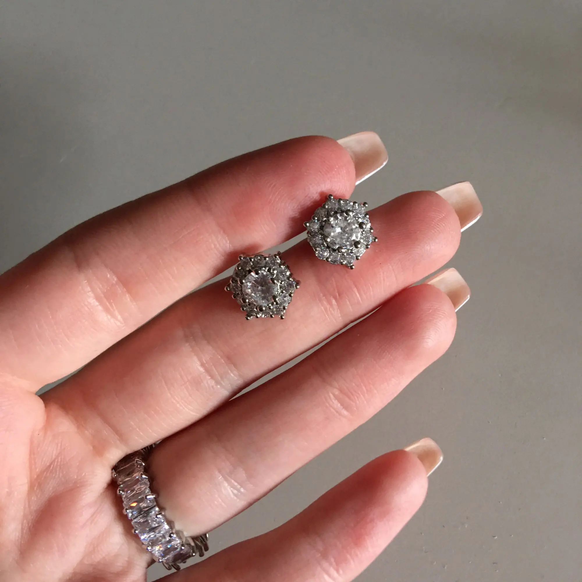 Серьги-гвоздики женские круглые из серебра 925 пробы с фианитами