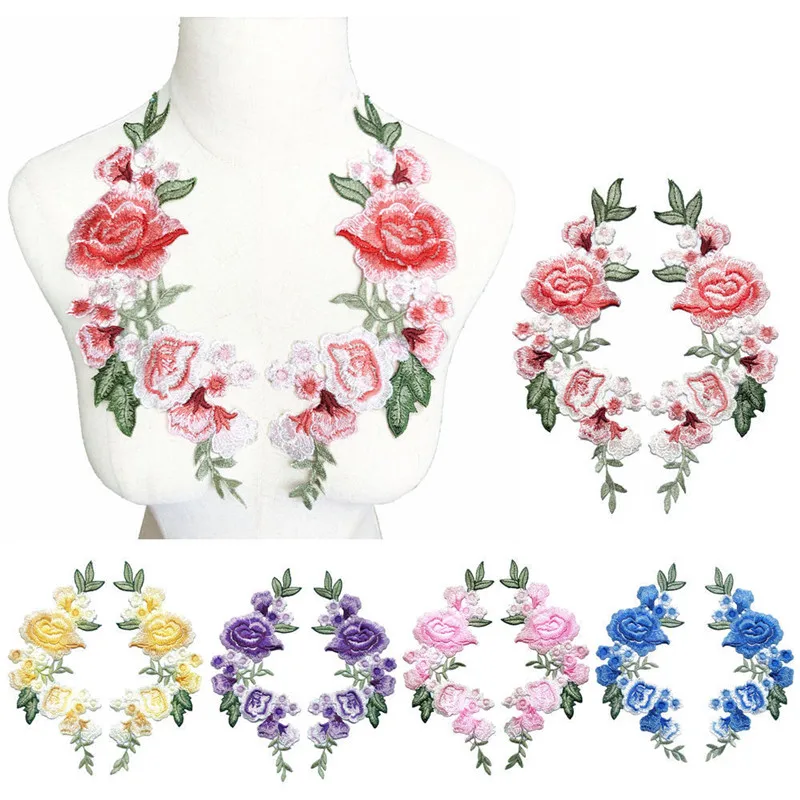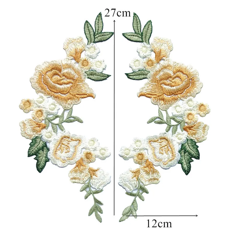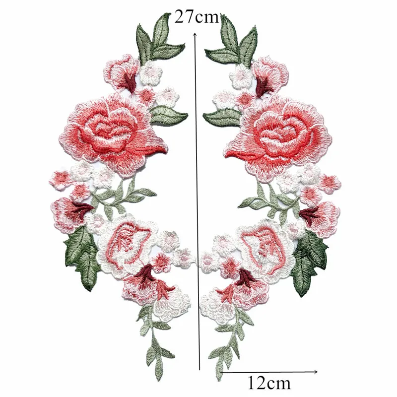 Вышитые нашивки с розами и пионами, свадебные аппликации 5 цветов, кружевные нашивки для платья невесты, вечерние нашивки сделай сам, 27 см, 2 шт.