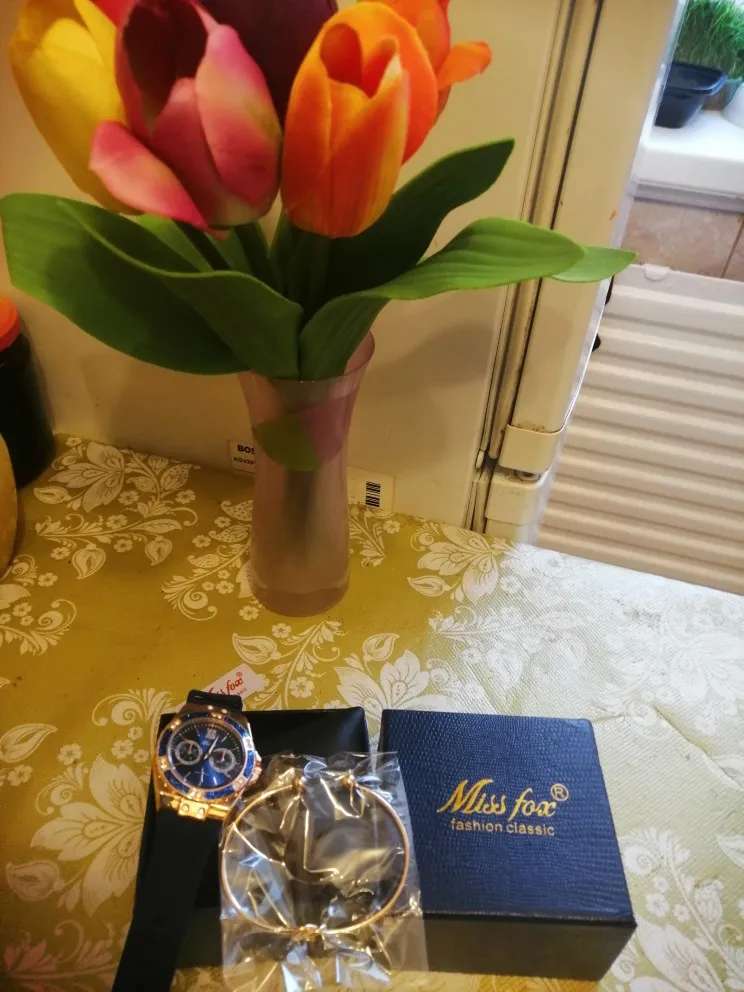 Часы красивые. В подарок браслетик. Прикольно. Но батарейку пришлось сразу же менять. Часы пришли с нерабочей. Но скорость доставки и сама Доставка до дверей курьером выше всяких похвал. Продавца всем рекомендую