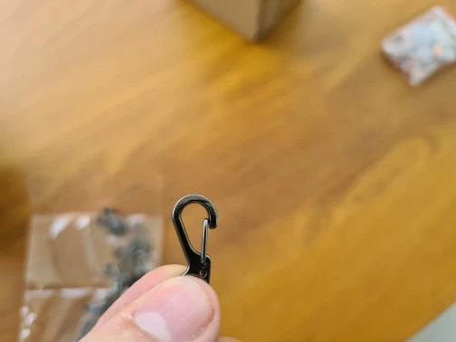 Размер зажима небольшой, хорошо захватывает, подходит для брелков, треккинговых шнуров и т. д. я думаю, что он имеет хорошую прочность, я думаю, что это прочный материал.