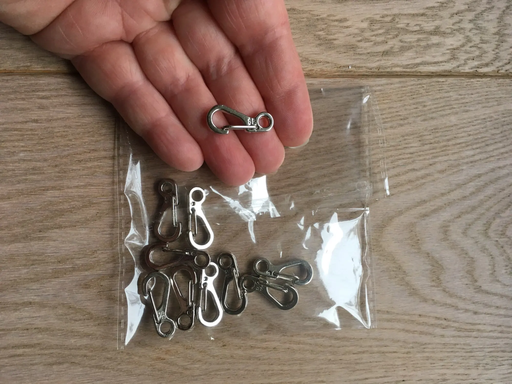Карабины очень маленькие, на удивление крепкие и качественно сделаны. Доставка около месяца, для ключей и всякой мелочи в самый раз