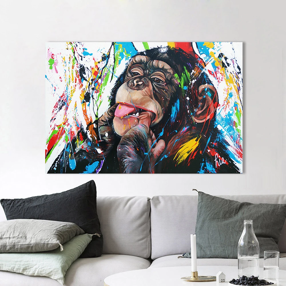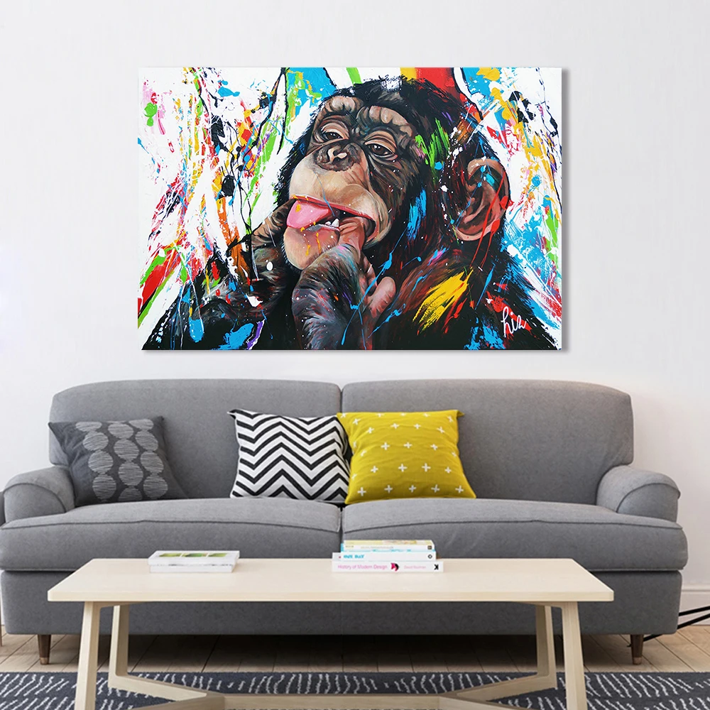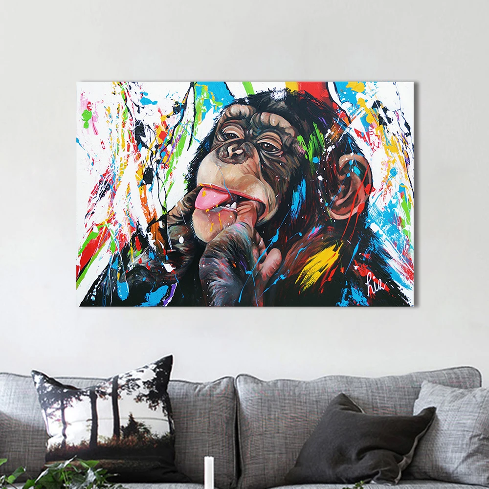 Настенная живопись AAHH, Vrolijk, Картина на холсте с забавными шимпандами, картина с животными, домашний декор, Настенная картина без рамки, Картина на холсте