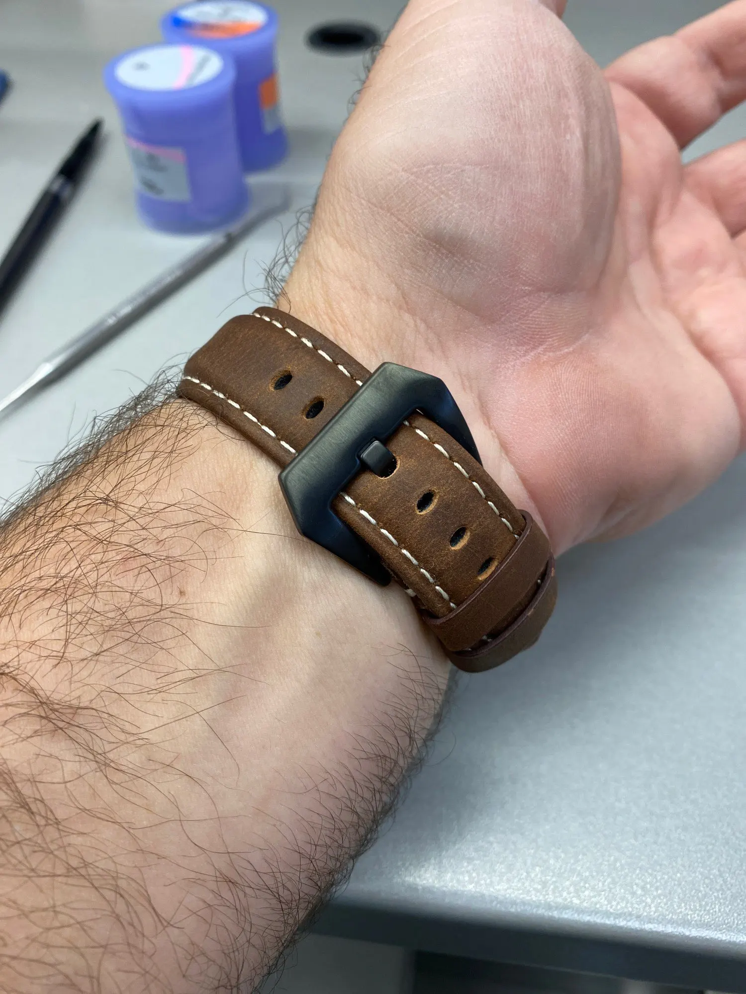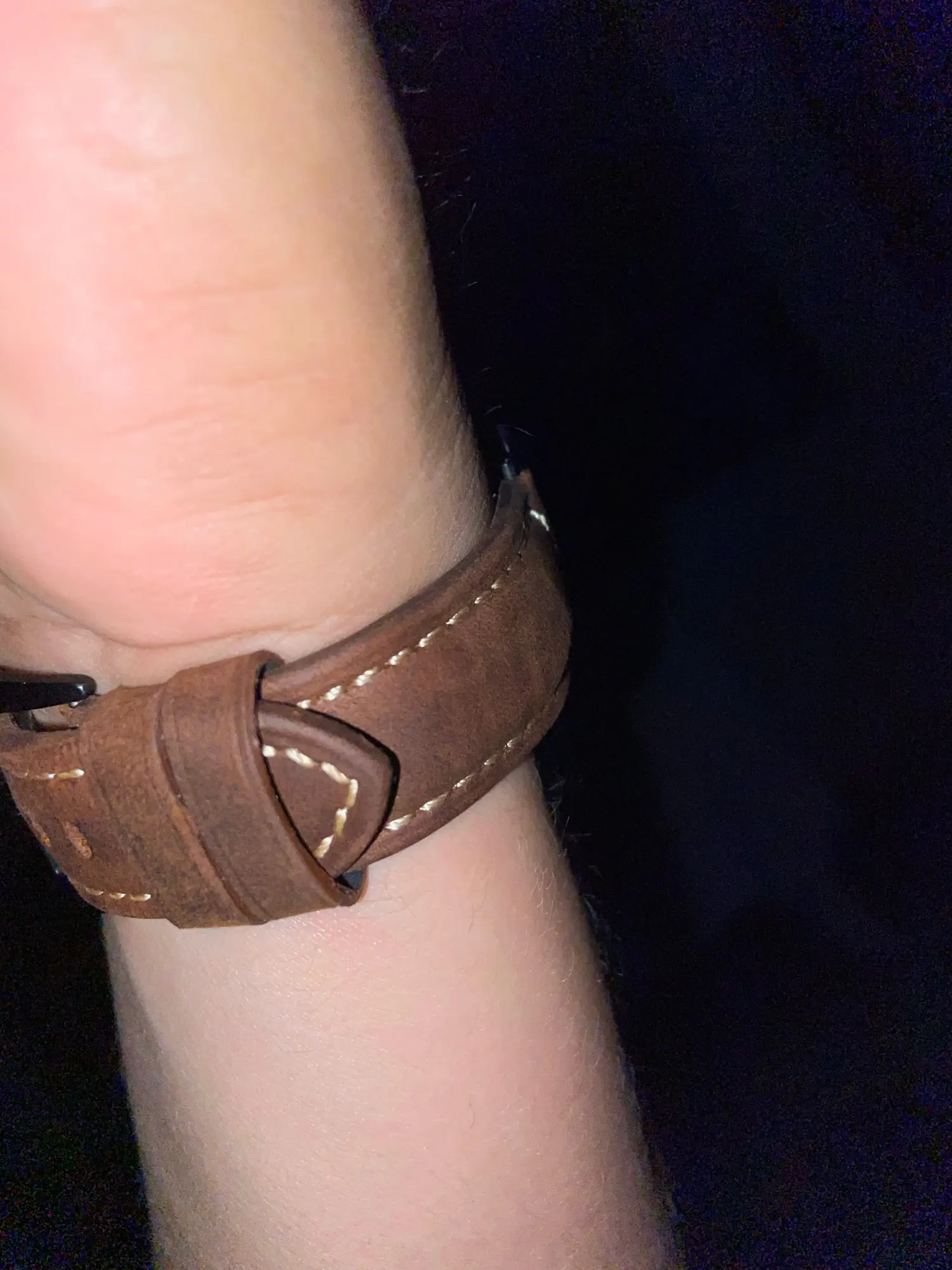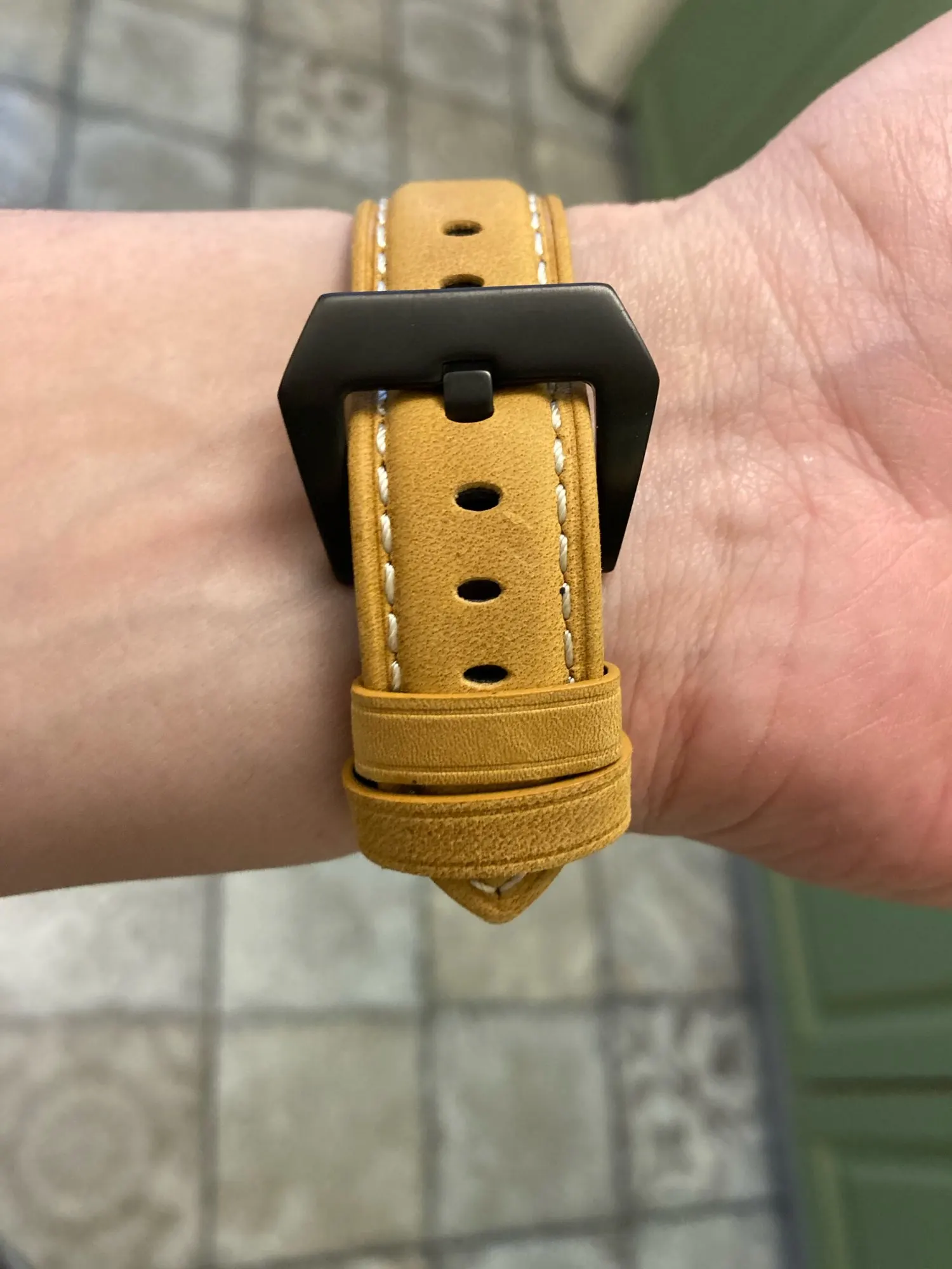 У меня тонкое запястье, и ремешок довольно широкий, но я сделал отверстие, и теперь он хорошо сидит.