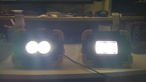 У круглого более четкие края светового пятна, поэтому пятно чуть ярче, чем у двойного квадрата. Отличные фонарики, брал на замену Яркому лучу со свинцовым АКБ. Зарядка- разрядка работают нормально. Пришло быстро, курьер домой принес. Рекомендую продавца и фонарики.