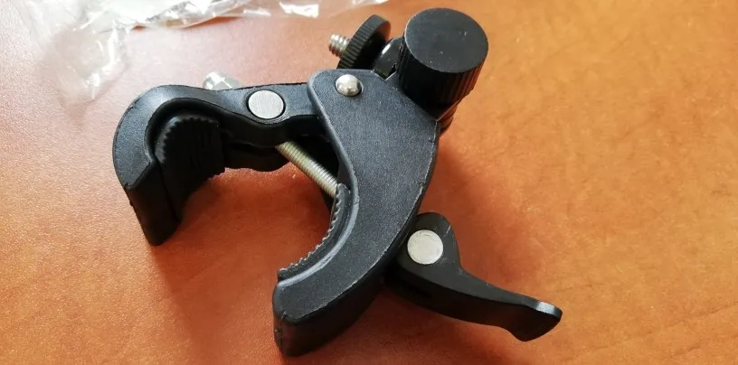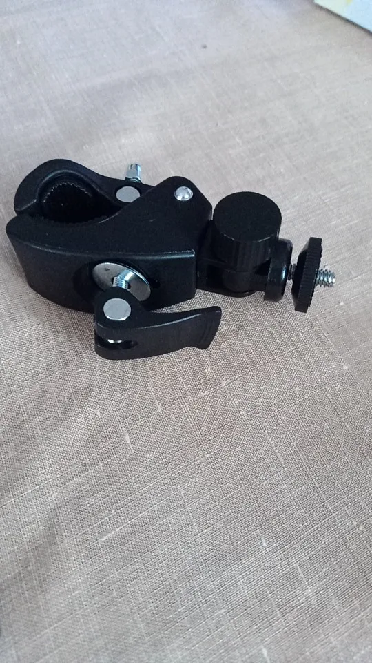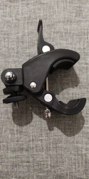 Сама "струбцина" довольно крепко крепиться, Но поворотный кулачок фиксатора не расщитан на постоянный демонтаж, Слабоват. Сделан он простого пластика, быстрый износ гарантирован.... Ещё один минус, это слабая пружинка фиксации поворотного механизма, (на фото изображен как 360 °) ,на велике или мотоцикле будет вибрировать.