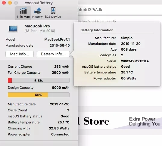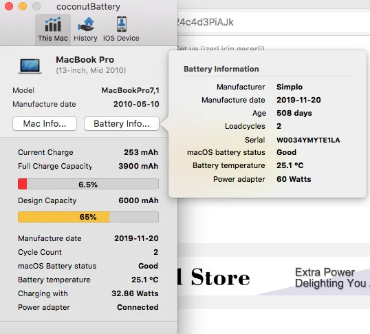 Отличная батарея. Светодиод около 50 дней с момента покупки. Оплатили 15,00 R$ офис и не облагались налогом. Рекомендуется использовать ноутбук в течение 2 недель. MacBook Pro 13 "mid2012.