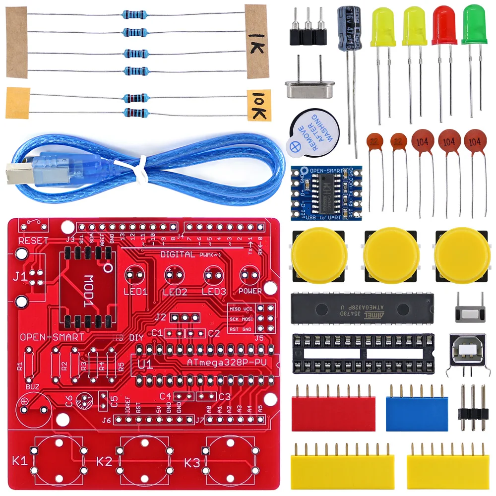 Набор инструментов для пайки ATmega328P, красный, для самостоятельной сборки, макетная плата CH340, драйвер с зуммесветодиодный светодиодная кнопка, совместимая с Arduino