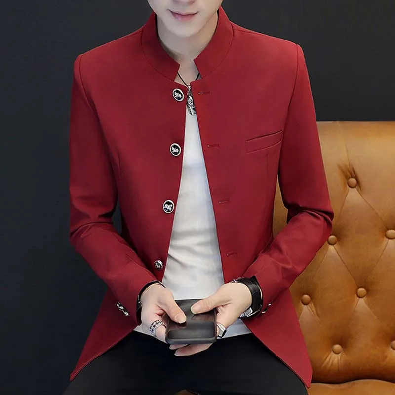 Мужской однотонный приталенный Блейзер с воротником-стойкой и длинными рукавами