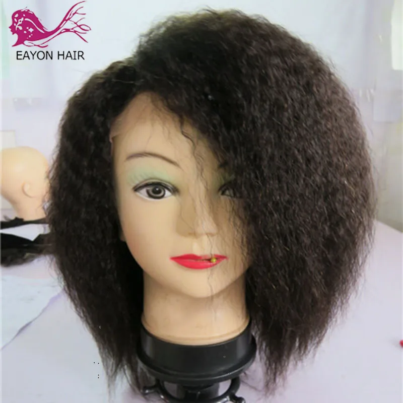 EAYON курчавые прямые 13x6 кружевные передние человеческие волосы парики для женщин 130 Плотность грубой Yaki бразильские Реми короткие волосы парик естественного цвета