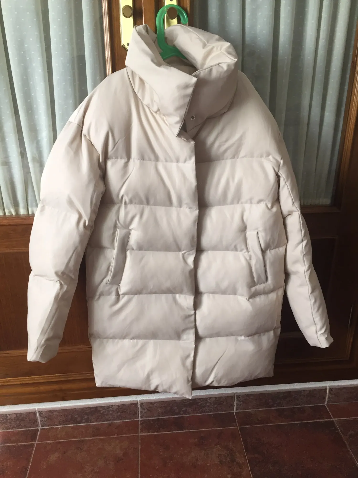 Куртку оценю на 3/5. Хороший фасон,взяла М. Цвет на фото молочный,а на самом деле слоновая кость или перламутровый. Ткань приятная,набит на половину. Только получила и не могу сказать какую температуру выдерживает,но для тёплой зимы самое то,я думаю.