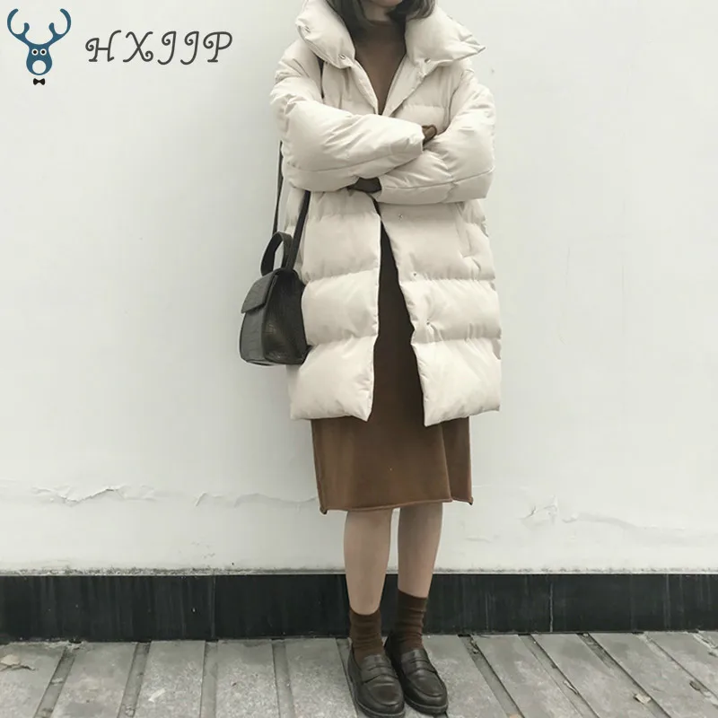 Толстая куртка HXJJP, женская зимняя верхняя одежда, длинная, повседневная, теплая, оверсайз, парка, фирменная, 2020