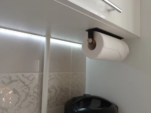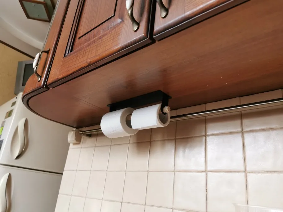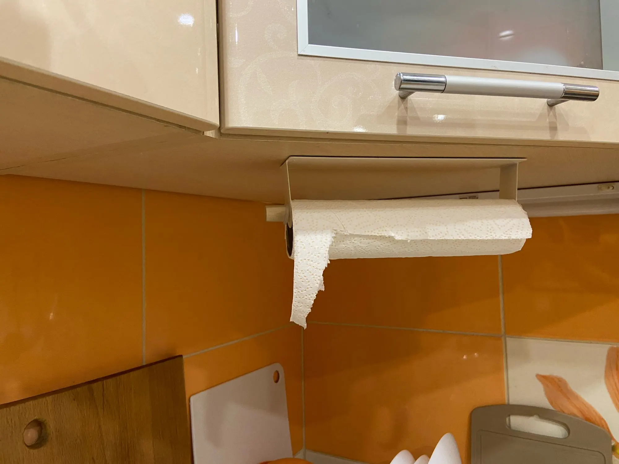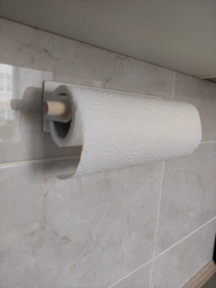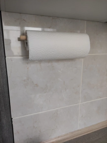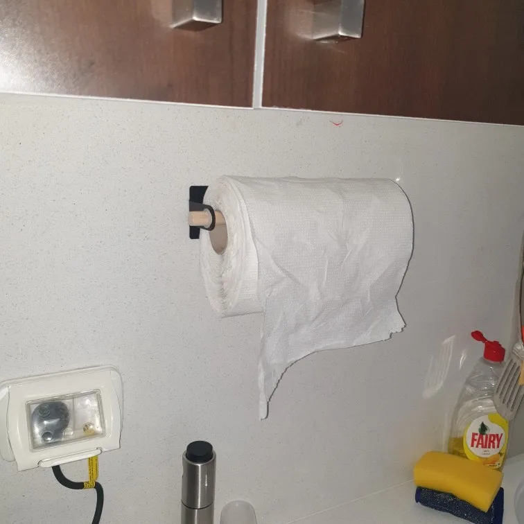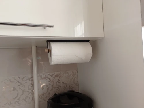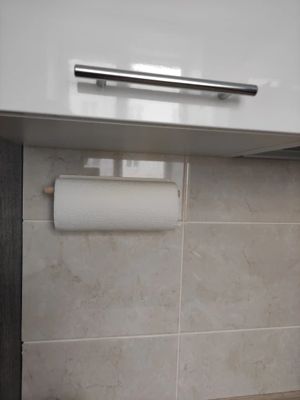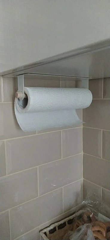 тримач для кухонних паперових рушників виглядає досить непогано, так як приклеїли під тумбу, спочатку падало, але можна посадити ще на двох сторонній скотч і буде ідеально! рекомендую!