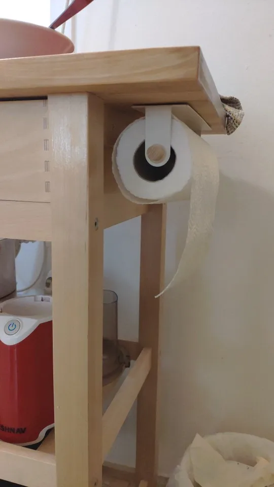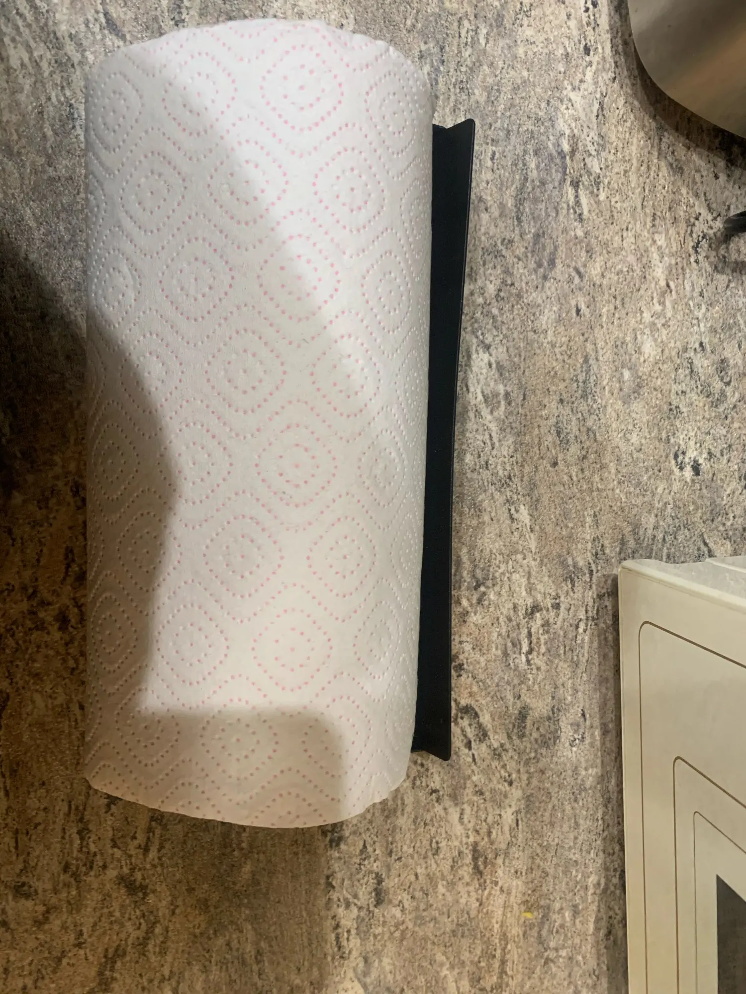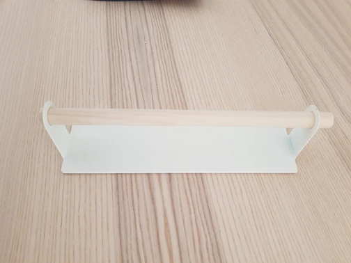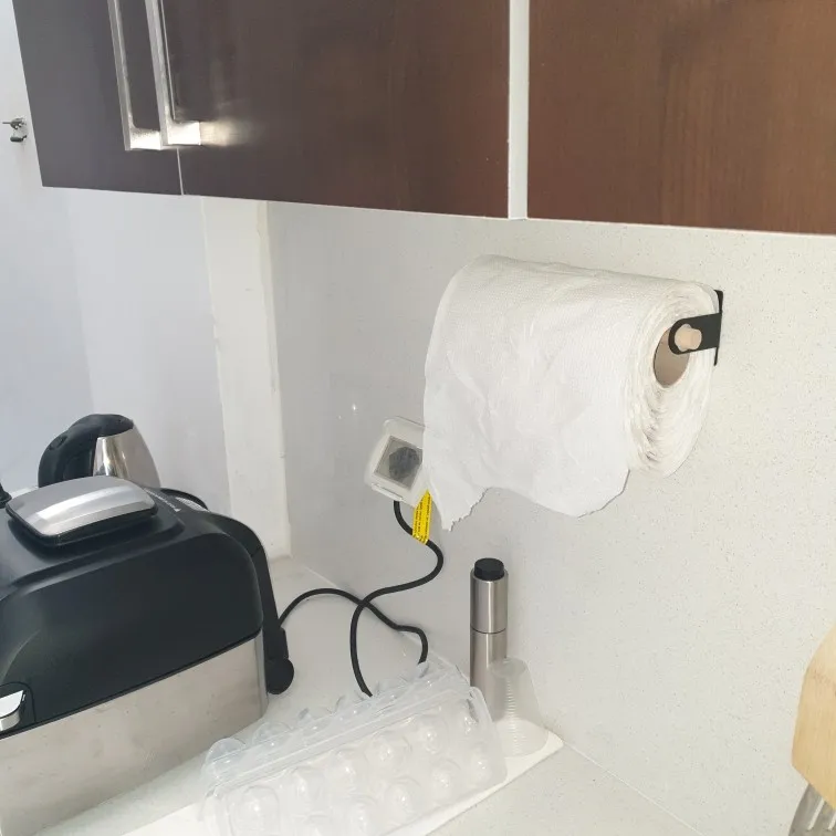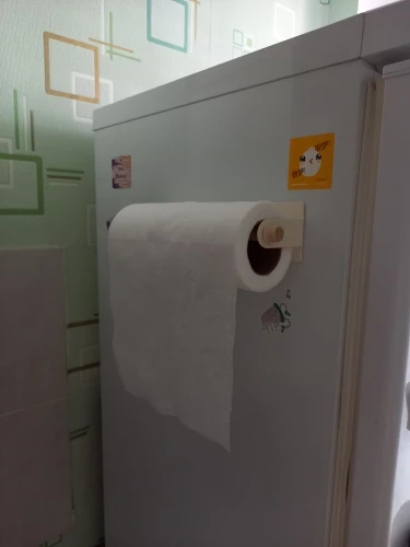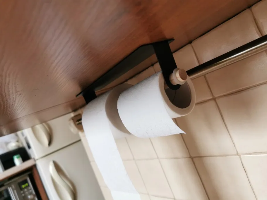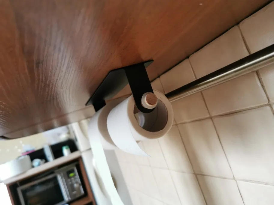 тримач для кухонних паперових рушників виглядає досить непогано, так як приклеїли під тумбу, спочатку падало, але можна посадити ще на двох сторонній скотч і буде ідеально! рекомендую!