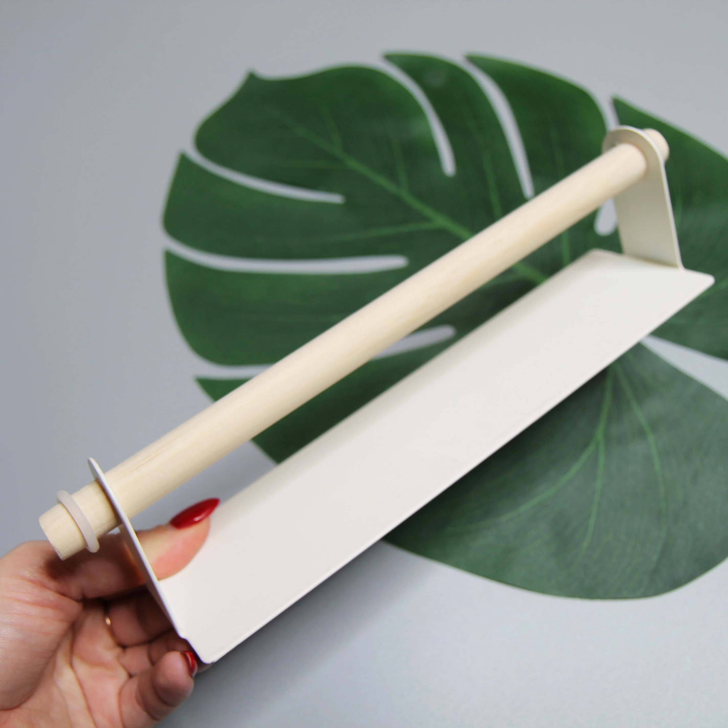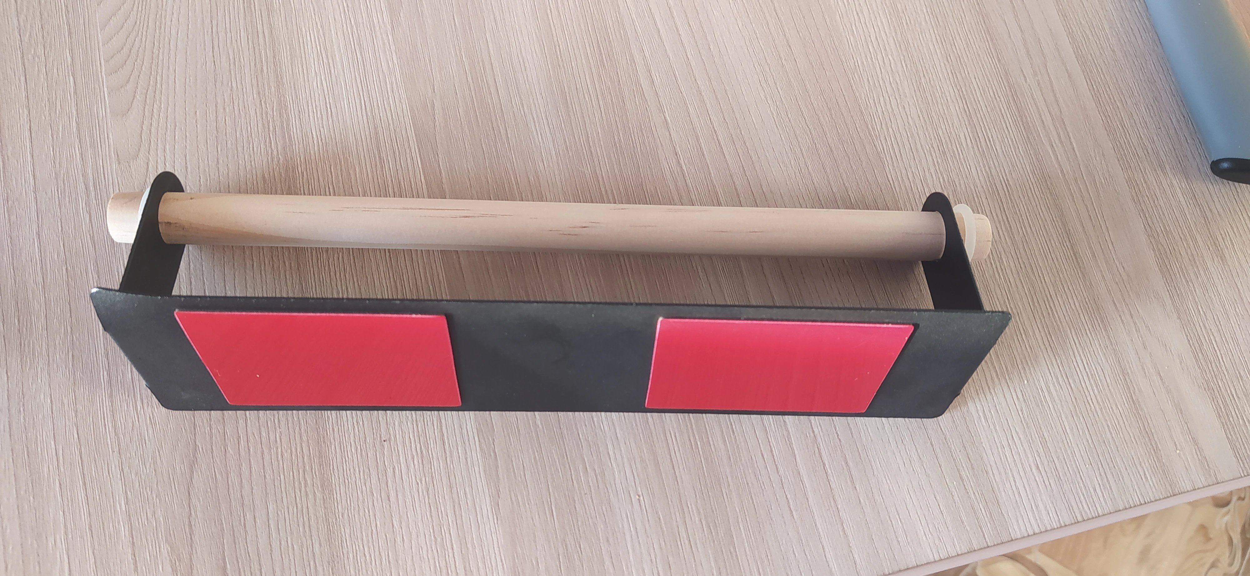 Отличная штука! Прекрасно держит рулон. По бокам мягкие резиночки, которые фиксируют палку и она не выпадывает .