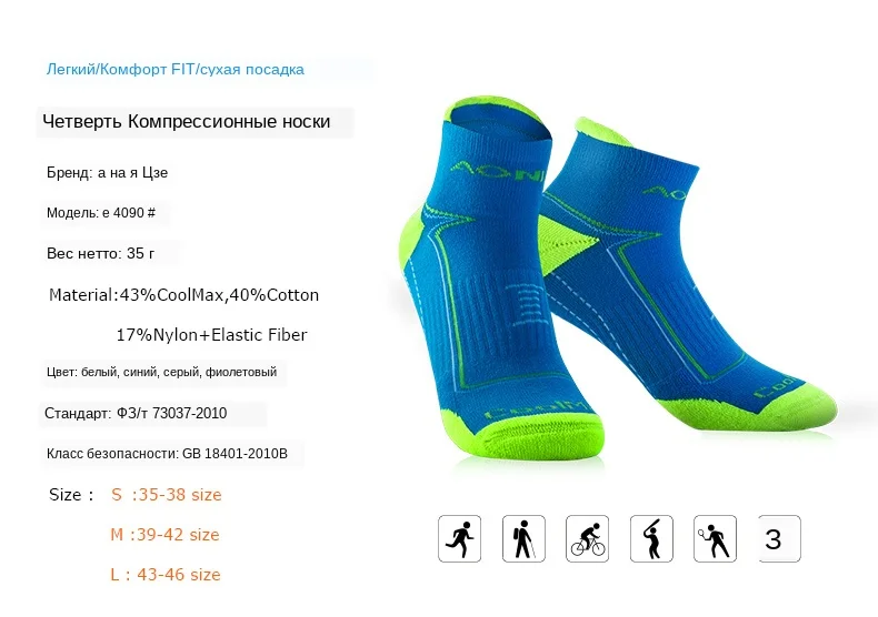Носки компрессионные AONIJIE E4090, для занятий спортом на открытом воздухе, бега, спортивных мероприятий, тренировок