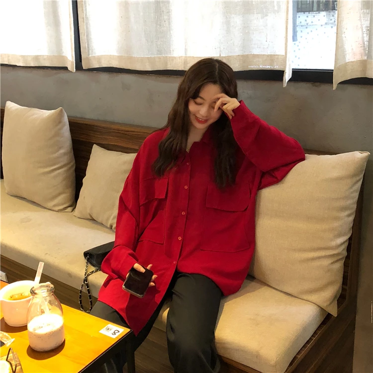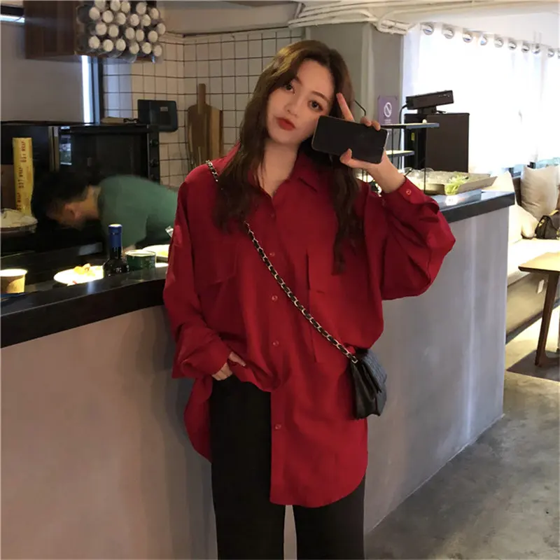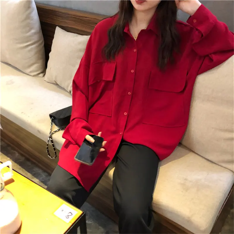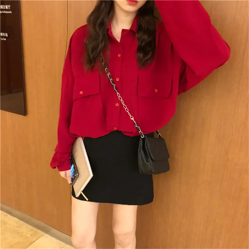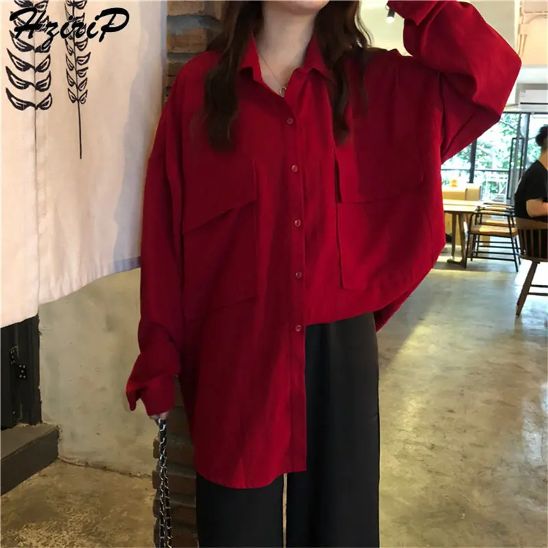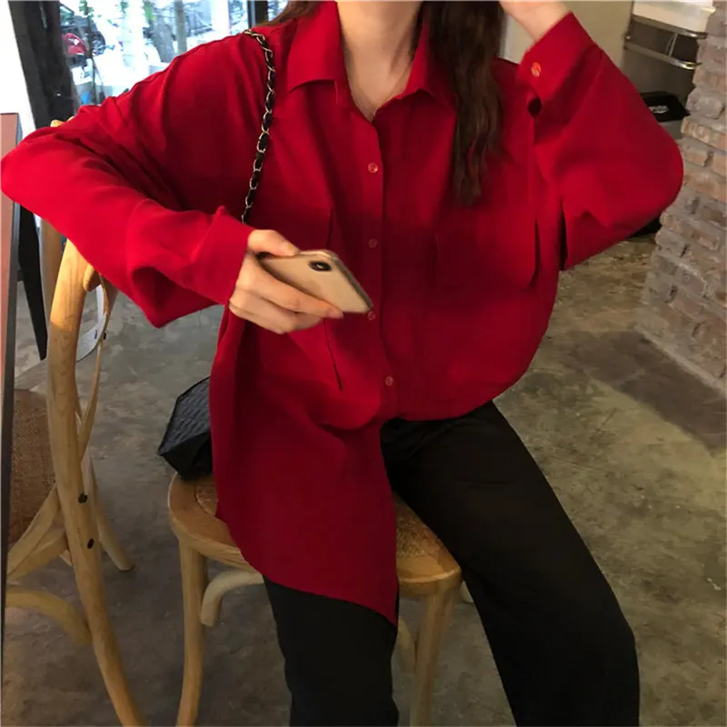 Новинка 2021, весенне-летние красные милые свободные однотонные повседневные универсальные кардиганы Hzirip высокого качества с длинным рукавом, рубашки