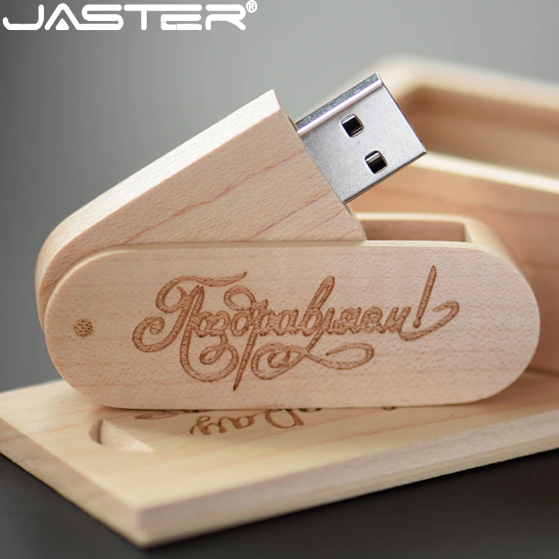 Деревянный USB-накопитель JASTER, 4 ГБ, 8 ГБ, 16 ГБ, 32 ГБ, 64 ГБ, экологически чистая древесина, возможно нанесение логотипа по индивидуальному заказу (1 шт. бесплатного логотипа)