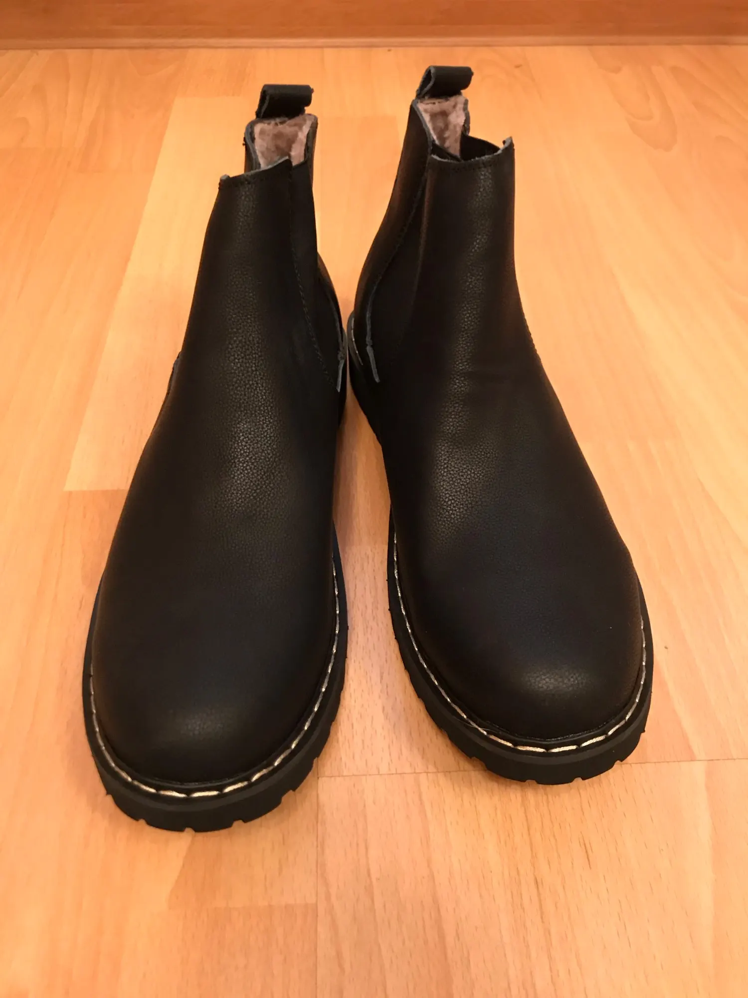 Единственная обувь с али (не Тмолл), где есть такие размеры, брал по сантиметрам, всё ок. немного переживал насчёт меха, что будет очень тёплой и не получится эксплуатировать в демисезон, но внешний материал очень тонкий и сам слой меха тоже. ботинки получилось не очень тёплые, но мне вполне достаточно, а вот -28 они уже не вывозят. евро зима/демисезон, в остальном качеством доволен, хоть и кое что торчит по внутрянке. я рекомендую.