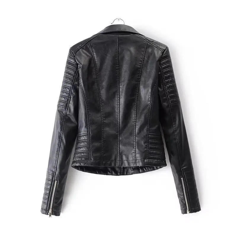Куртка женская из искусственной кожи с длинным рукавом, на осеньзиму