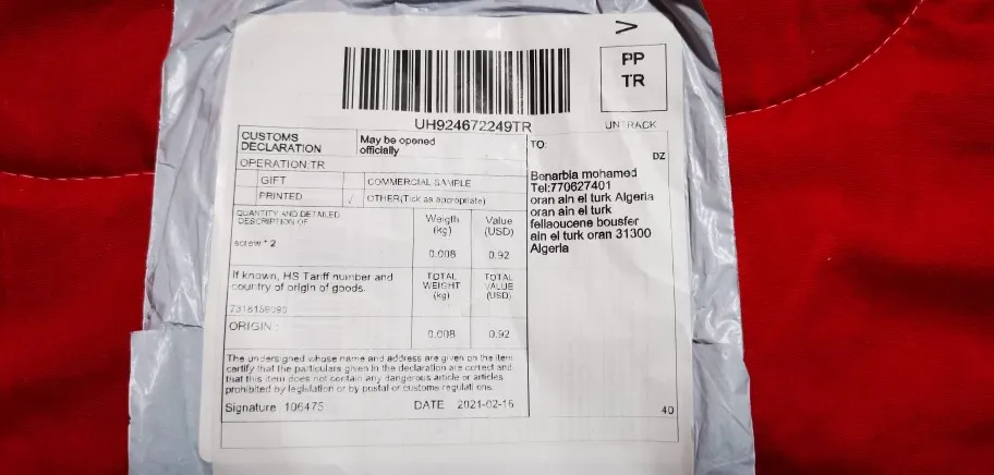 Страна: FR Доставка: Cainiao Super Economy Global 04.03.2021