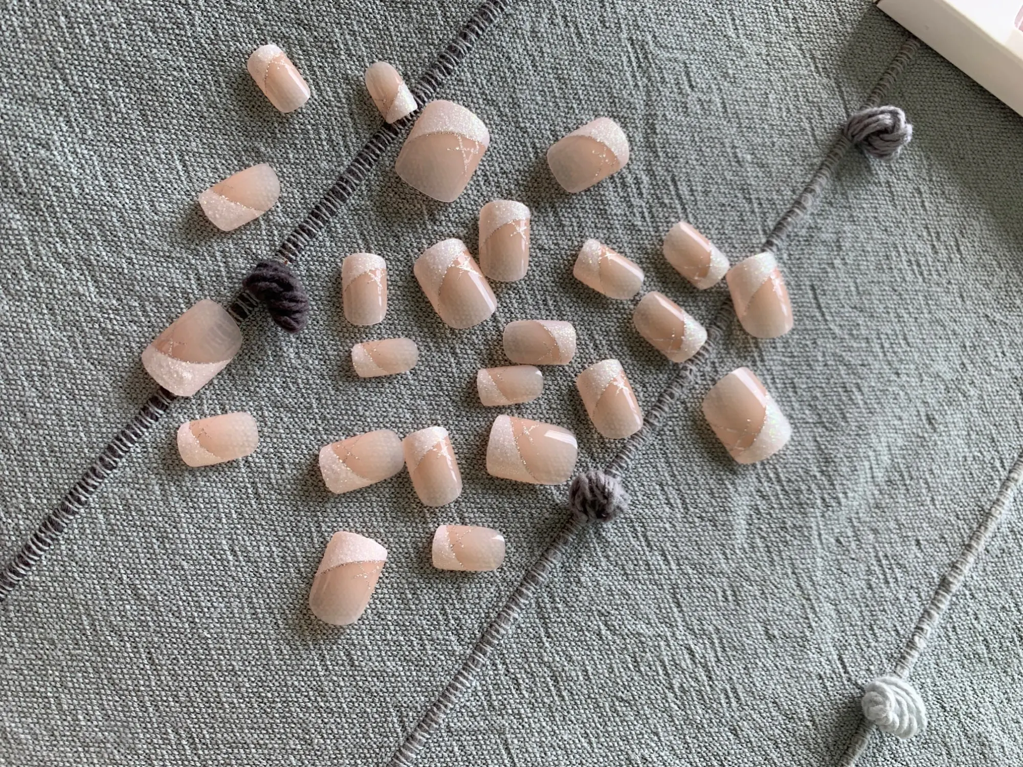 Они очень красивые, красивые. И они не выцветают, они поставляются 24 шт. разных размеров ногтей и двустороннего клея, они, кажется, хорошо прилипают и после использования они также хорошо удаляют клей. Я не знаю, что они сделают после того, как прослужат несколько часов.