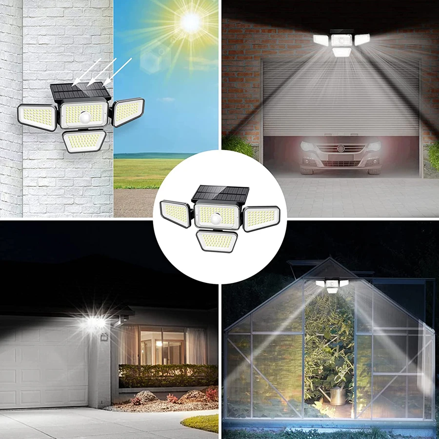 270 лм светодиодов s солнечный уличсветодиодный светодиодный светильник для безопасности водонепроницаемый датчик движения прожексветильник с 3 регулируемыми головками для двора гаража