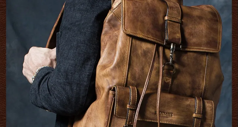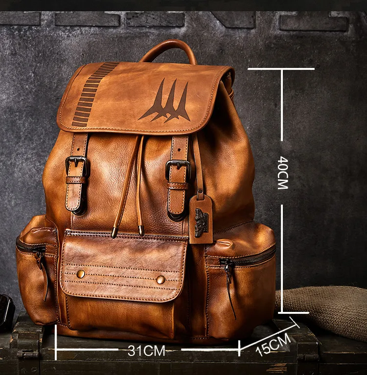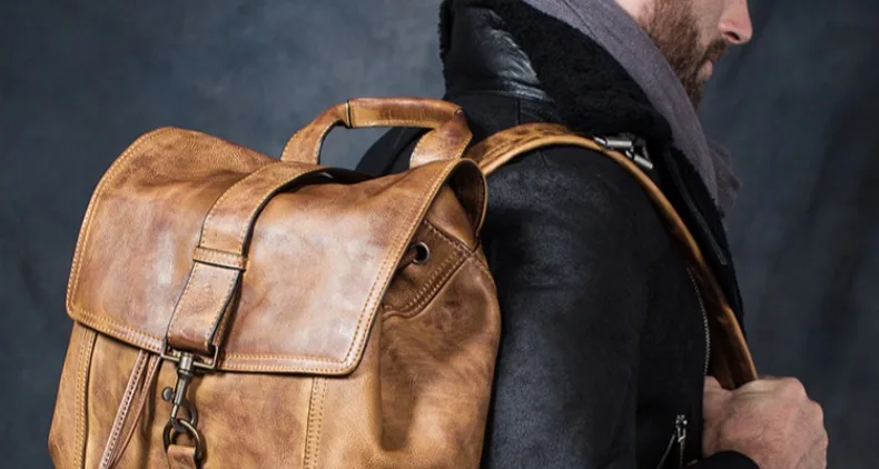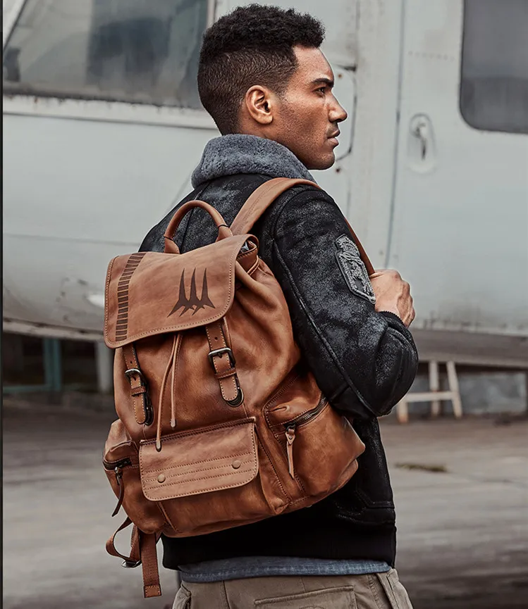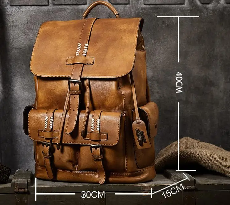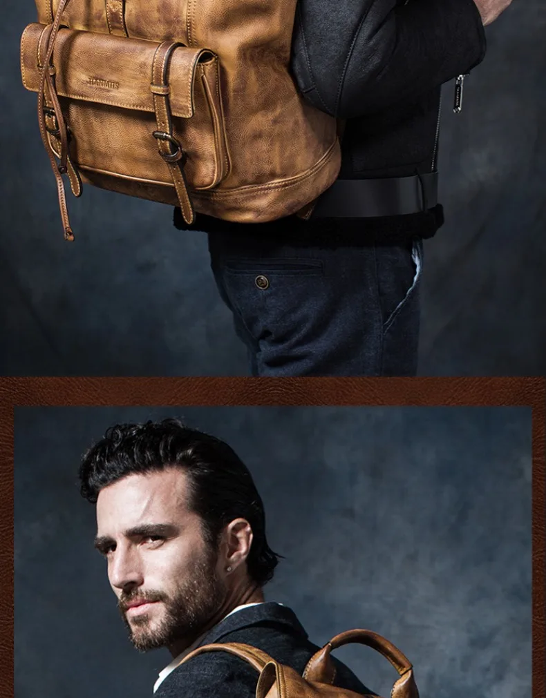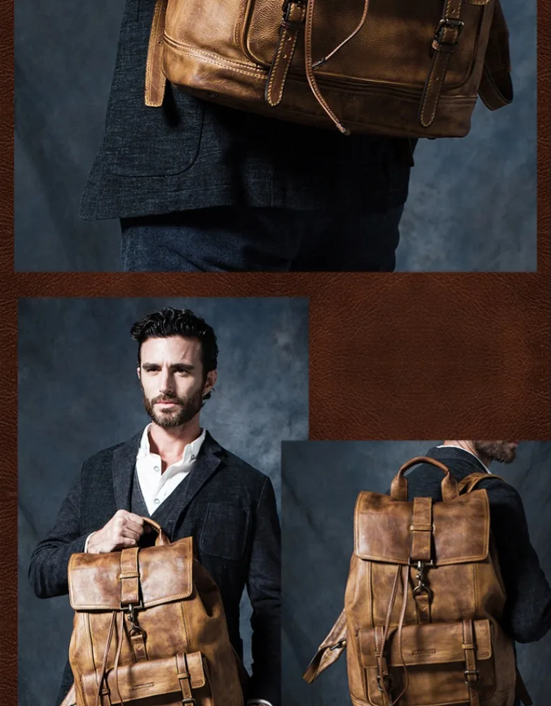Рюкзак мужской, из натуральной кожи, для путешествий, для ноутбука