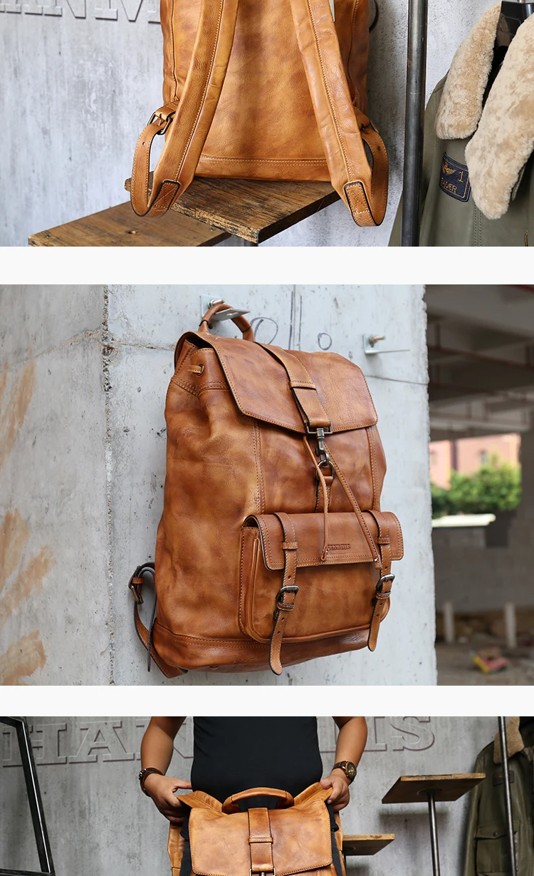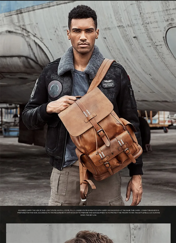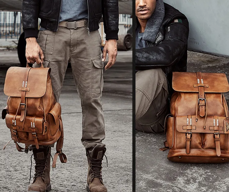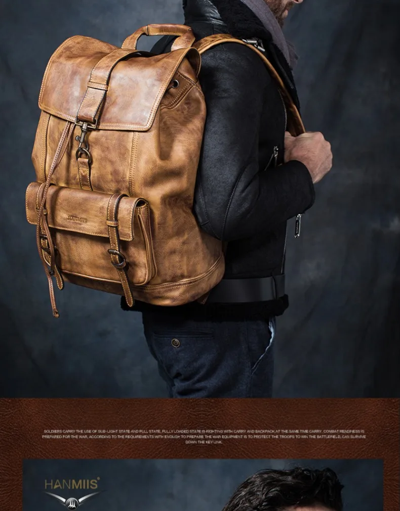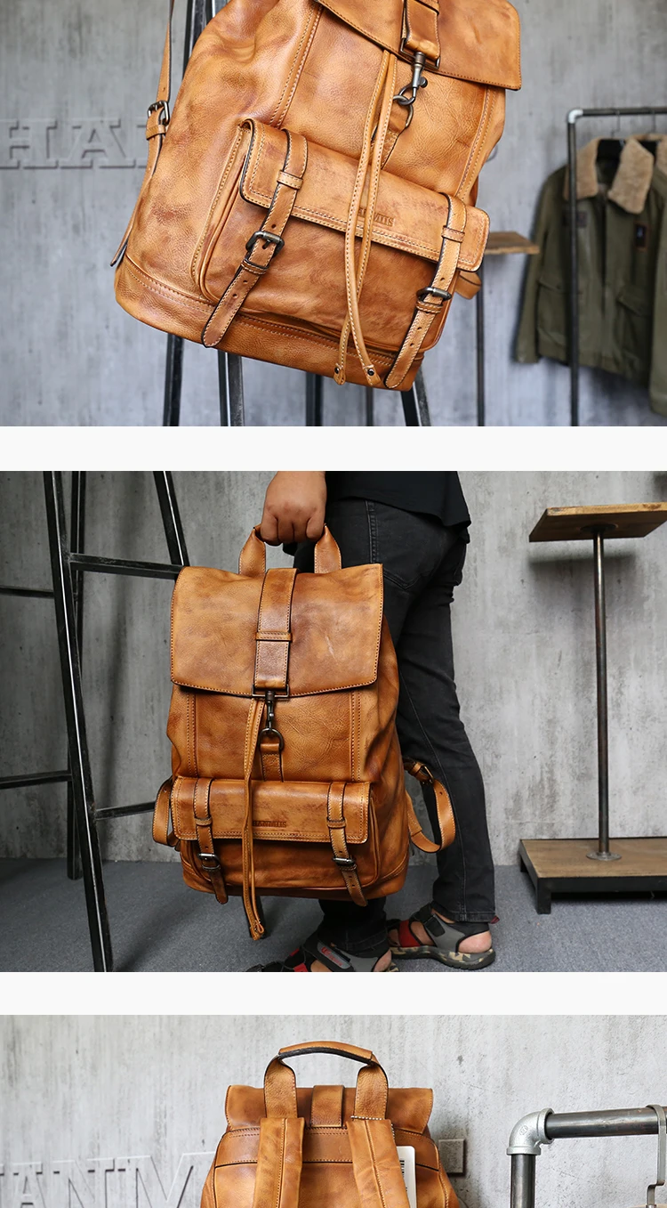 Рюкзак мужской, из натуральной кожи, для путешествий, для ноутбука