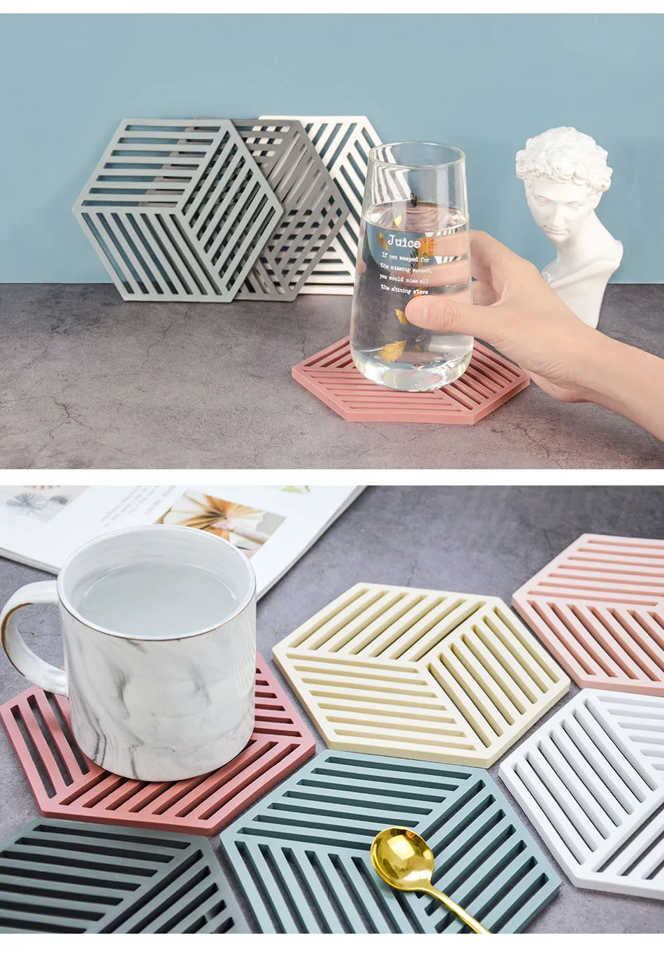 Силиконовая подставка под чашку, шестиугольные коврики, термоизолированная Подставка под чашу, домашний декор, экологичный, шикарный, в японском стиле, простой, 1 шт. icon star icon star icon star icon star icon star