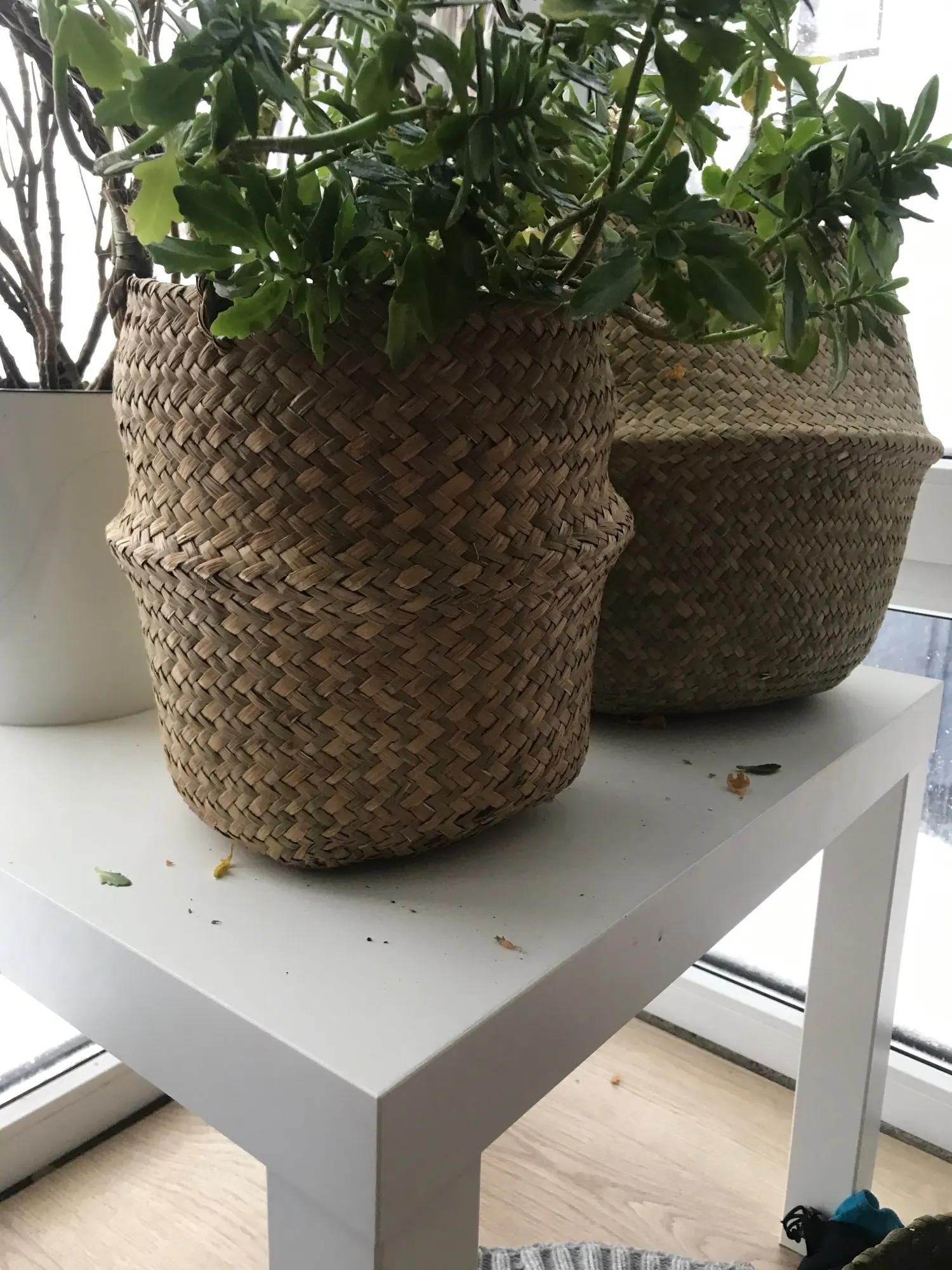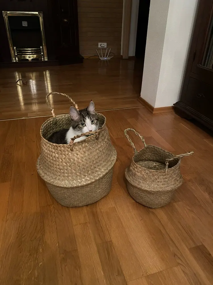 корзинки пришли быстро, корзинка которая больше ну прям очень большая, мне понравились, было немного торчащих соломинок в общем все устроило