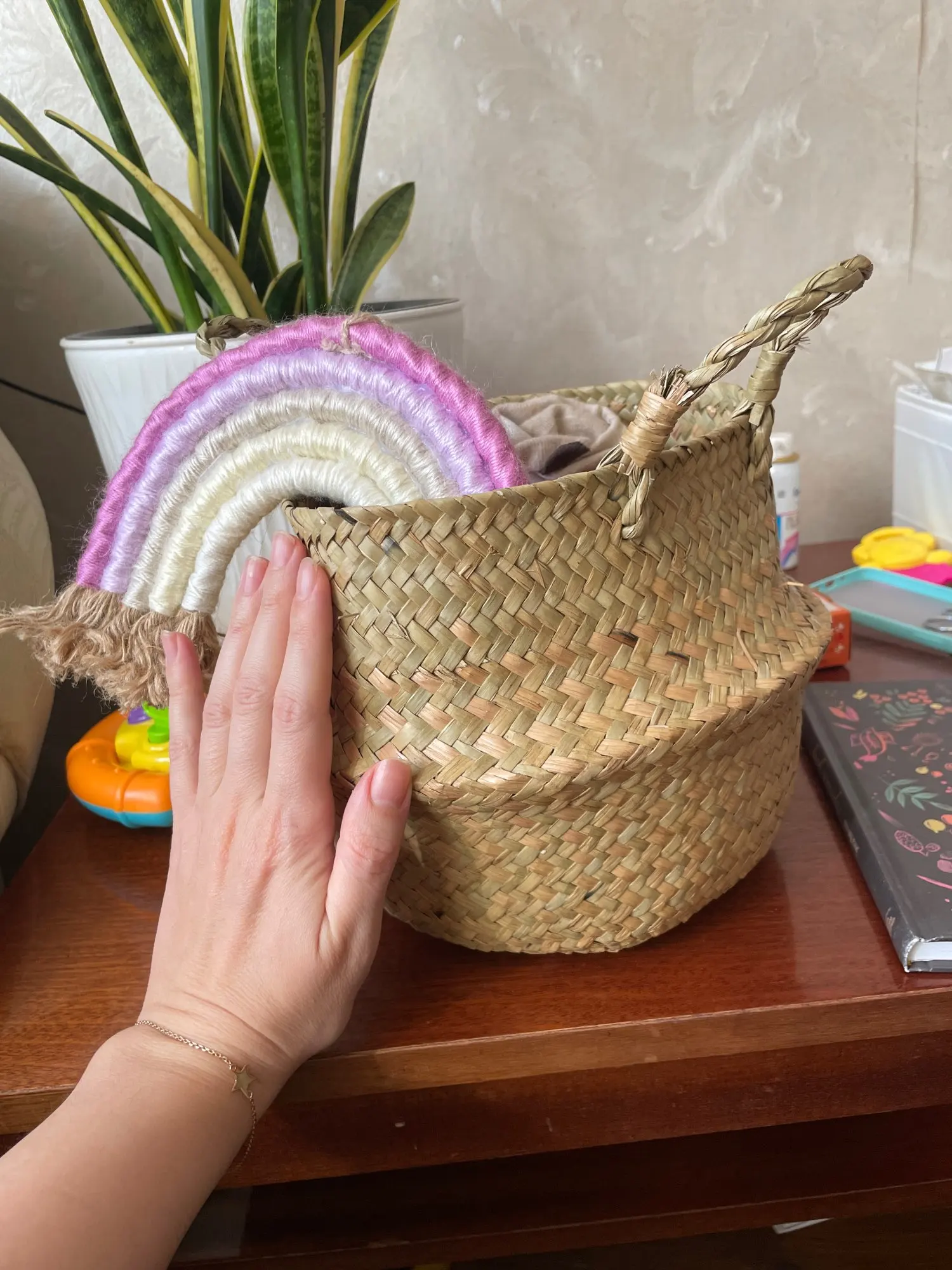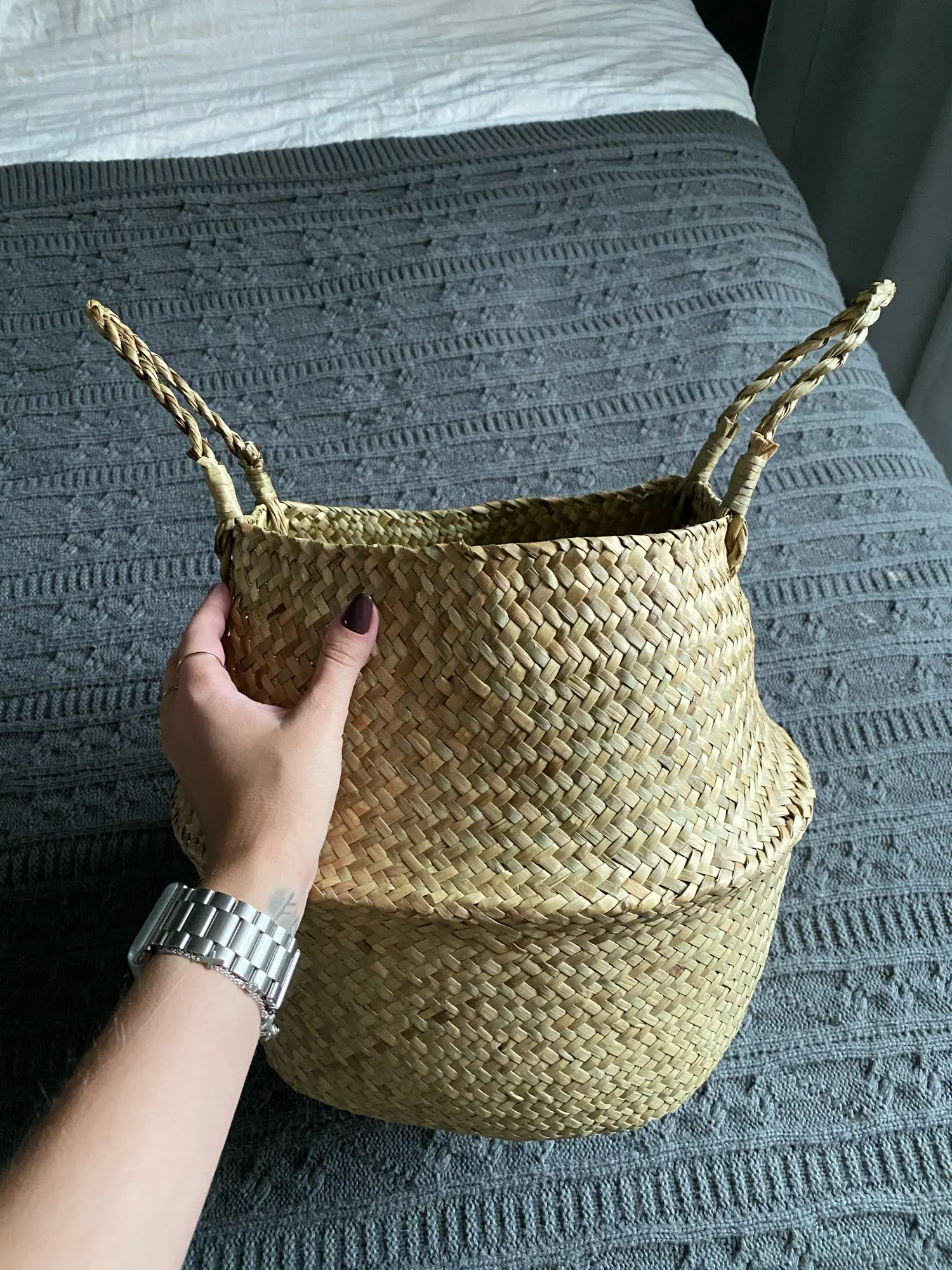 5 звезд за вкусный запах травы. хотела использовать как корзинку для белья, но тонковата. вполне подойдёт для хранения пледа или поставить внутрь горшок